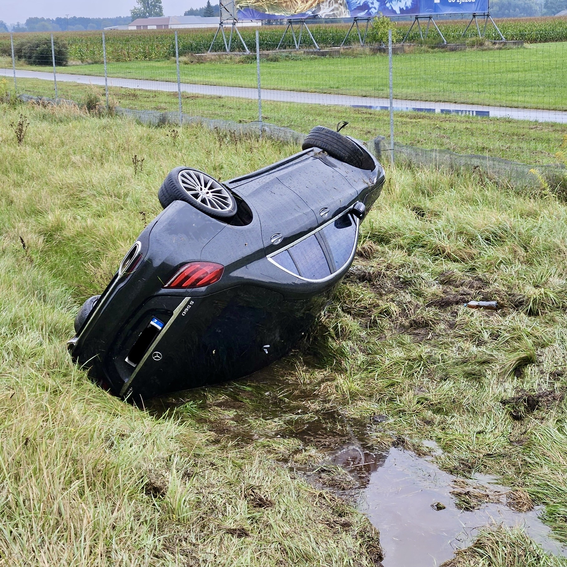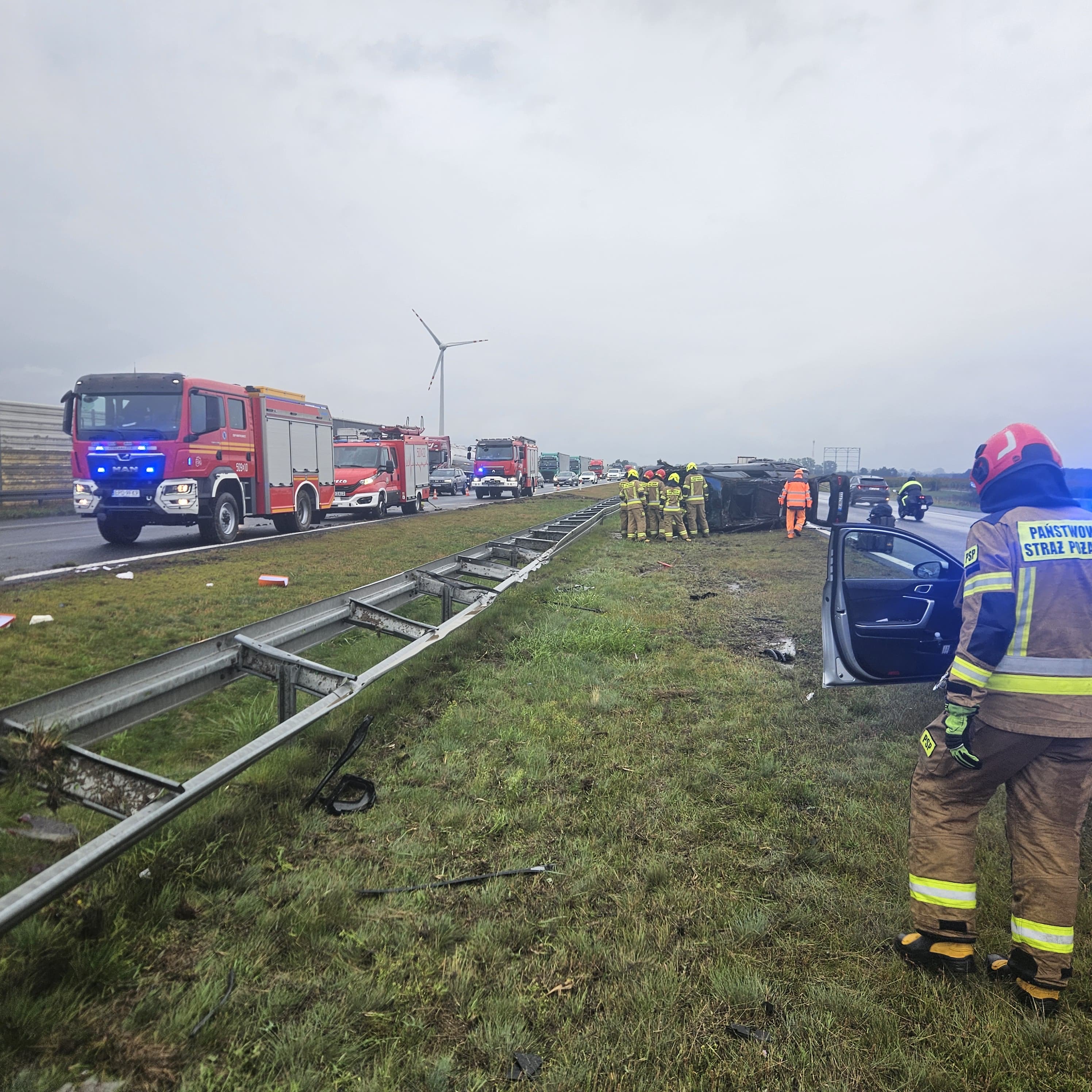 14.09.2025r. o godz.15.12 Stanowisko Kierowania Komendanta PSP w Poddębicach otrzymało informację z CPR Łódź o wypadku dwóch samochodów osobowych (Mercedes) na autostradzie A2 (313km.) w kierunku na Warszawę na wysokości miejscowości Kiki gm. Wartkowice. Po przyjeździe na miejsce strażaków z Jednostki Ratowniczo-Gaśniczej w Poddębicach zastano uszkodzone pojazdy, które znajdowały się poza jezdnią autostrady. W wyniku wypadku poszkodowanym został jeden z podróżujących z samochodu Mercedes (mężczyzna lat 47), któremu na miejscu strażacy udzielili kwalifikowanej pierwszej pomocy i przekazali pod opiekę Zespołowi Ratownictwa Medycznego. Następnie mężczyzna został zabrany do szpitala w Poddębicach. Podczas prowadzonych działań ratowniczych jeden pas ruchu w kierunku na Warszawę był zablokowany.