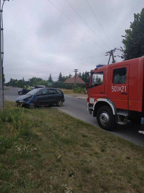 Wypadek dwóch samochodów osobowych w miejscowości Poddębice na ul. Mickiewicza