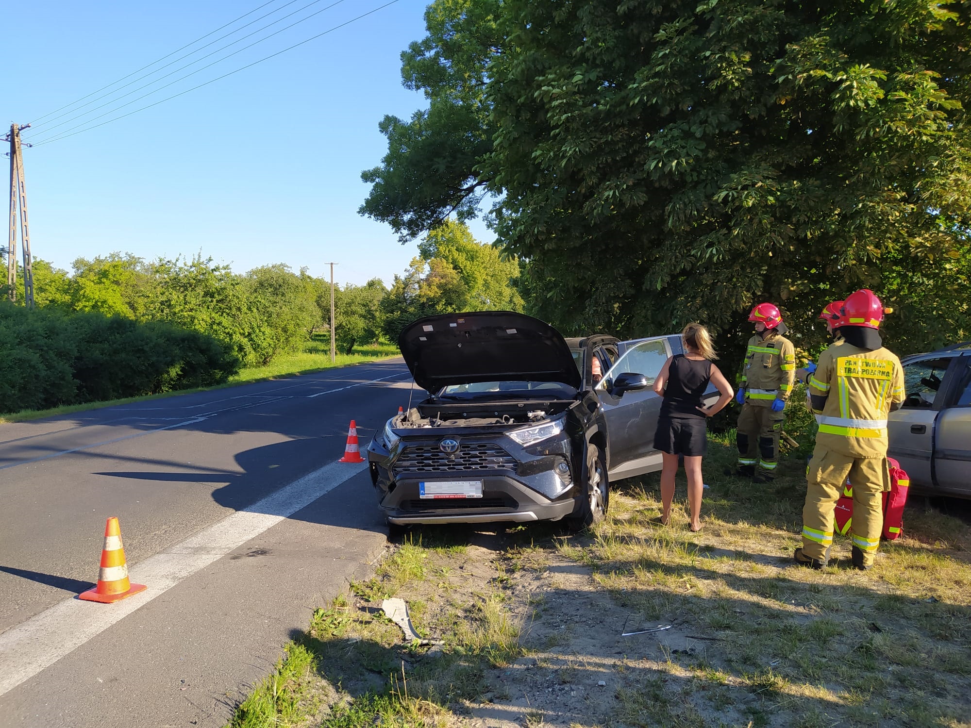 W dniu 04 lipca 2022 r. o godzinie 06:15 Stanowisko Kierowania Komendanta PSP w Poddębicach otrzymało informację z CPR Łódź o zdarzeniu drogowym w miejscowości Krępa gm. Poddębice. Po dojeździe na miejsce zdarzenia zastano dwa uszkodone pojazdy osobowe, które znajdowały się poza drogą wojewódzką nr 473. W wyniku zdarzenia cztery osoby zostały poszkodowane. Strażacy udzielili osobom poszkodowanym kwalifikowanej pierwszej pomcy, a następnie przekazali poszkodowanych przybyłym na miejsce Zespołom Rtownictwa Medycznego.