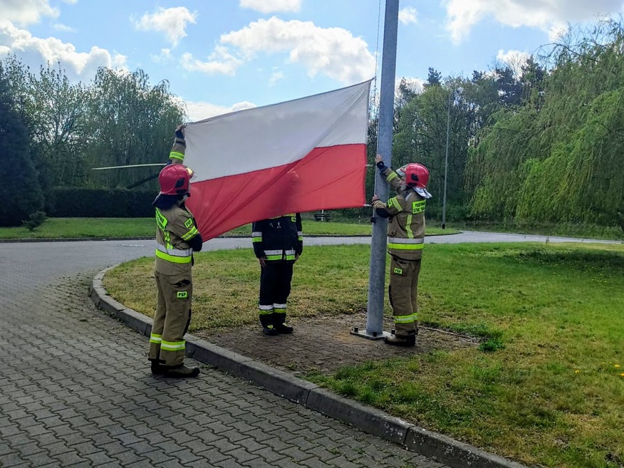 Dziś w Dniu Flagi Rzeczypospolitej Polskiej przed siedzibą komendy powiatowej Państwowej Straży Pożarnej w Policach dokonano uroczystego podniesienia flagi państwowej przez strażaków ze zmiany służbowej Jednostki Ratowniczo-Gaśniczej.