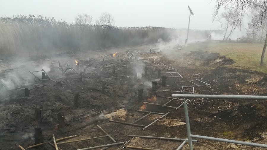 Bardzo duży pożar promenady spacerowej w Trzebieży