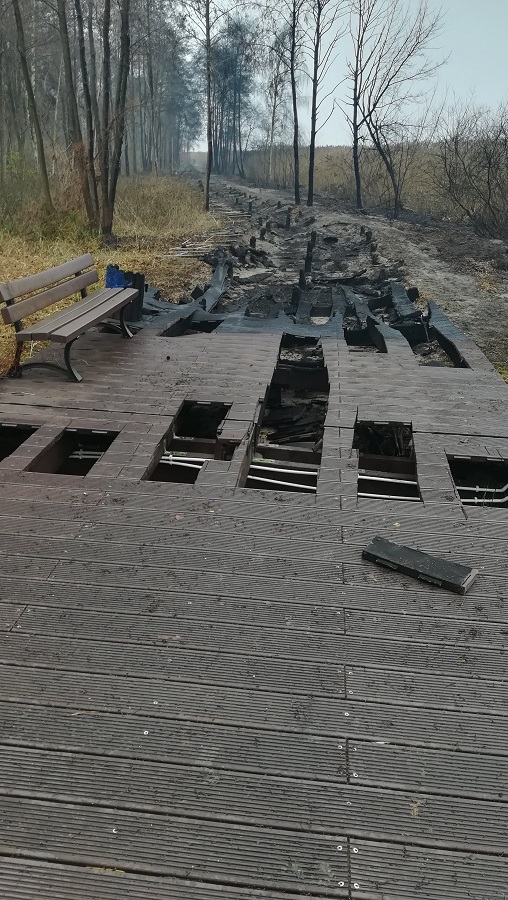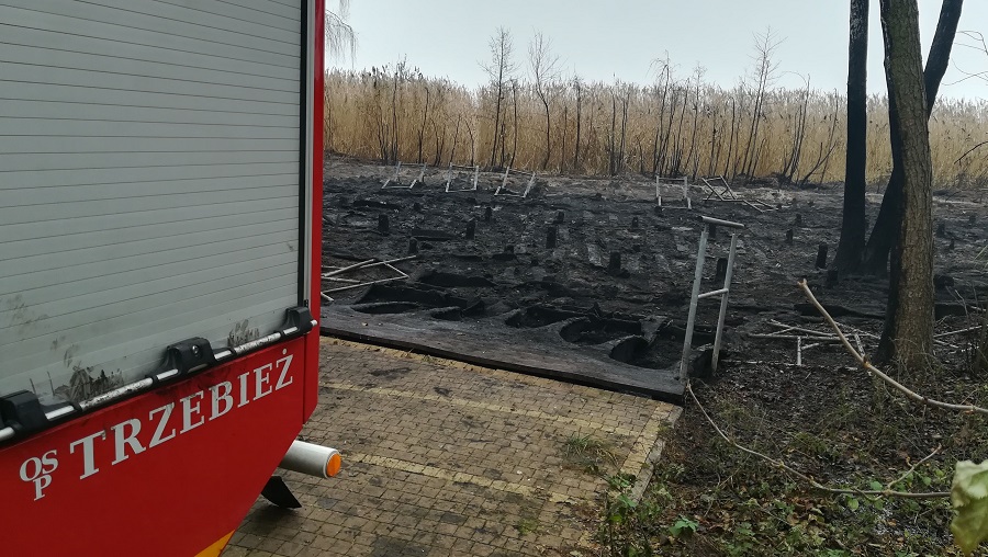24 listopada 2018 r. o godzinie 1:48 do stanowiska kierowania wpłynełą informacja o pożarze lasu na ul. Spacerowej w Trzebieży. Na miejsce została zadysponowany zastęp z miejscowej jednostki OSP. Po przyjeździe na miejsce zdarzenia okazało się, że płoną pomosty z tworzywa sztucznego na prawie całej długości ulicy Spacerowej.
