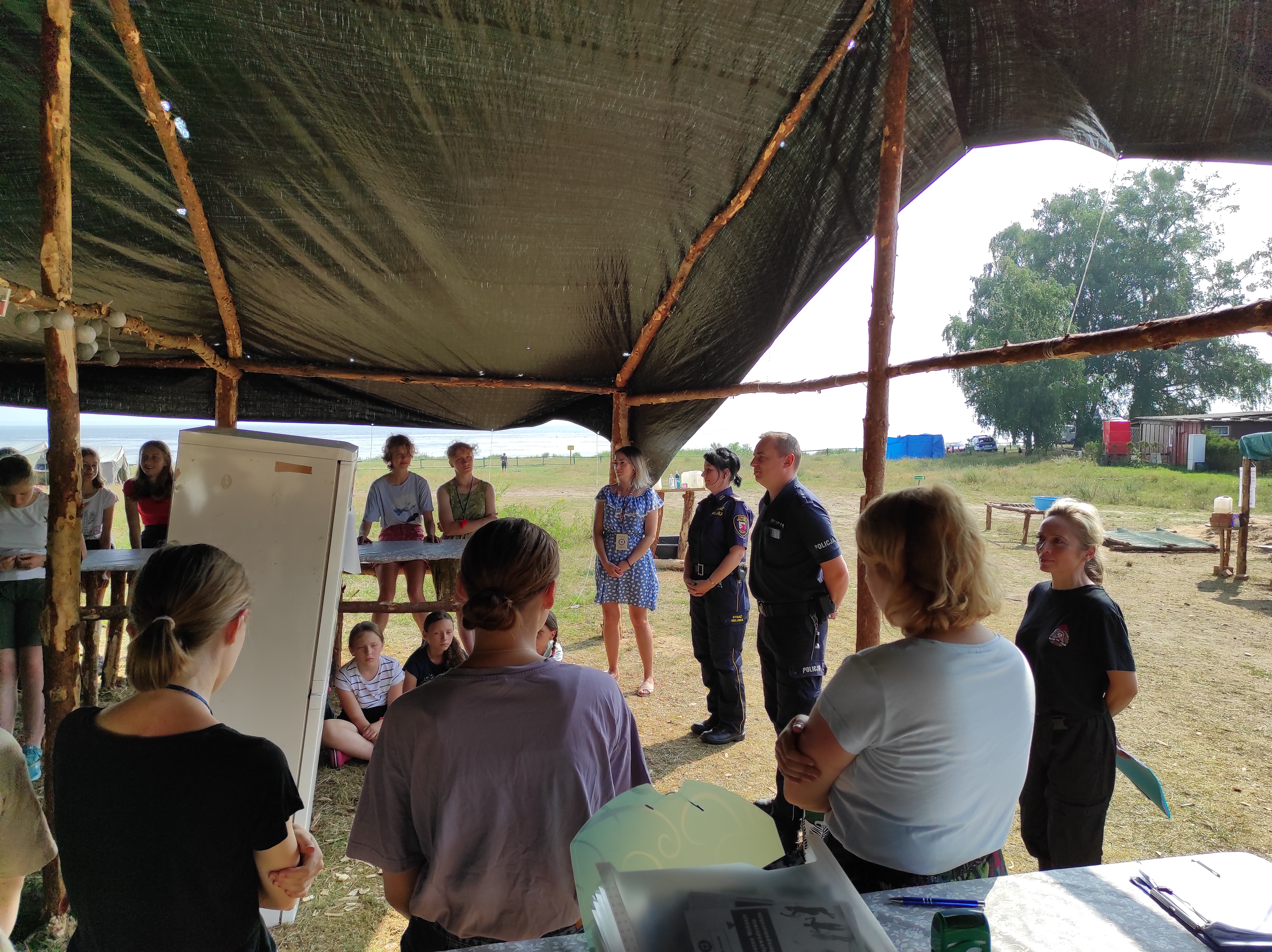 W ramach akcji „Bezpieczne Wakacje 2021” od początku miesiąca policcy strażacy, wspólnie z innymi przedstawicielami służb biorą udział w prelekcjach w miejscach organizacji wypoczynku dzieci i młodzieży. Dzieci podczas szkoleń poznają podstawowe zasady bezpieczeństwa podczas, m.in. wypoczynku nad wodą, czy zasadach ewakuacji podczas zagrożenia, a także jak udzielać pierwszej pomocy. Po zakończeniu prelekcji dzieci otrzymują gadżety z zakresu bezpieczeństwa ufundowane przez Starostwo Powiatowe w Policach.