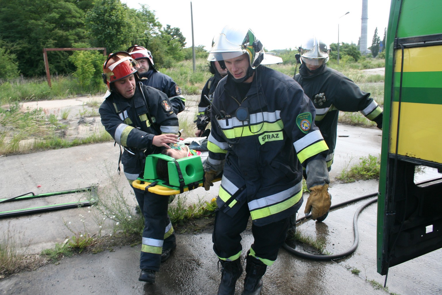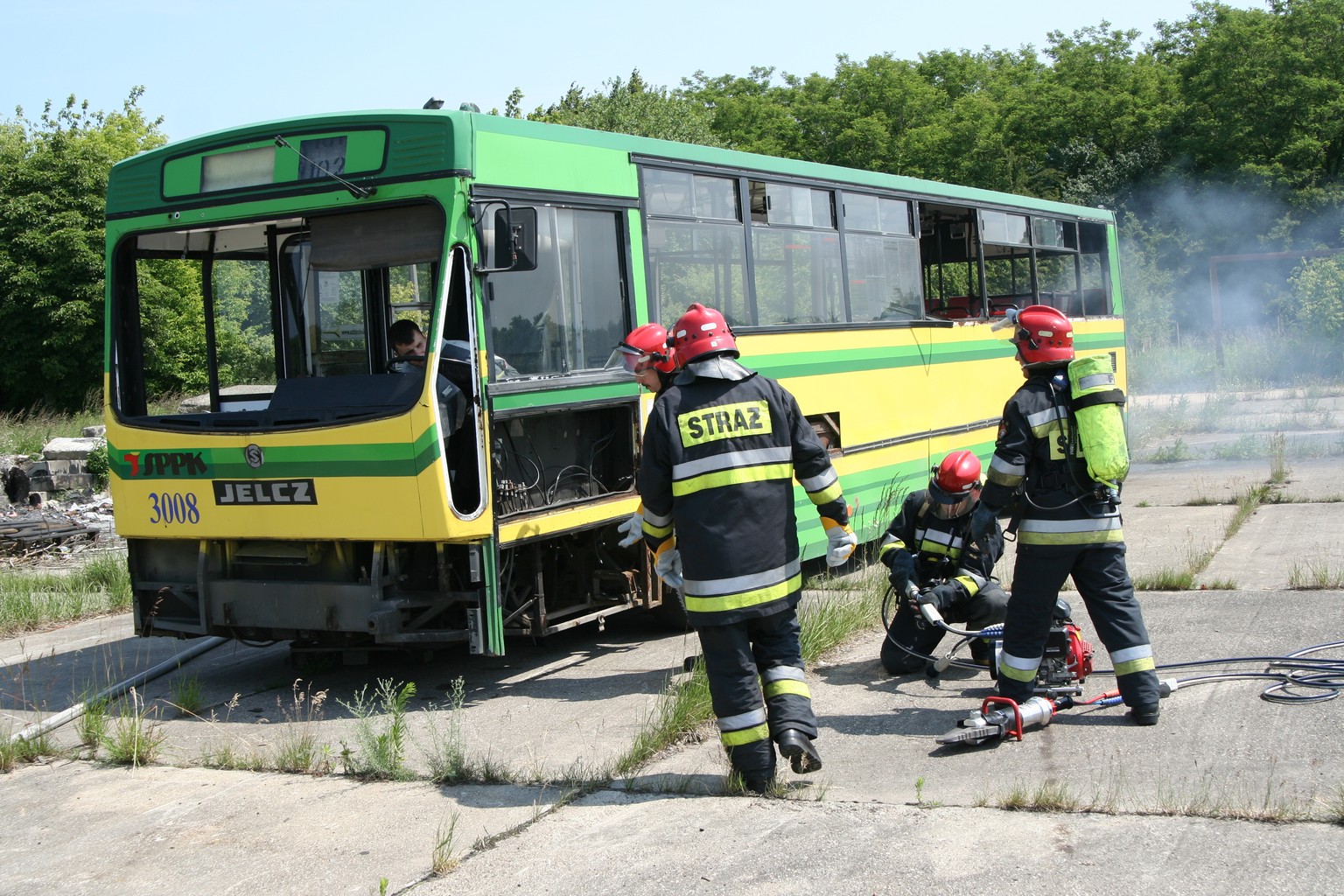 W dniach 24, 25, 29 czerwca przeprowadzono ćwiczenia obiektowe w Szczecińsko-Polickim Przedsiębiorstwie Komunikacyjnym. Dzięki uprzejmości Pana Prezesa SPPK dostaliśmy do swojej dyspozycji przeznaczony do demobilu autobus. Mogliśmy przećwiczyć zarówno ewakuację kierowcy jak i pasażerów oraz wydobycie osoby potrąconej, która znajdowała się pod autobusem. Działania ta wymagały użycia poduszek pneumatycznych i sprzętu hydraulicznego.