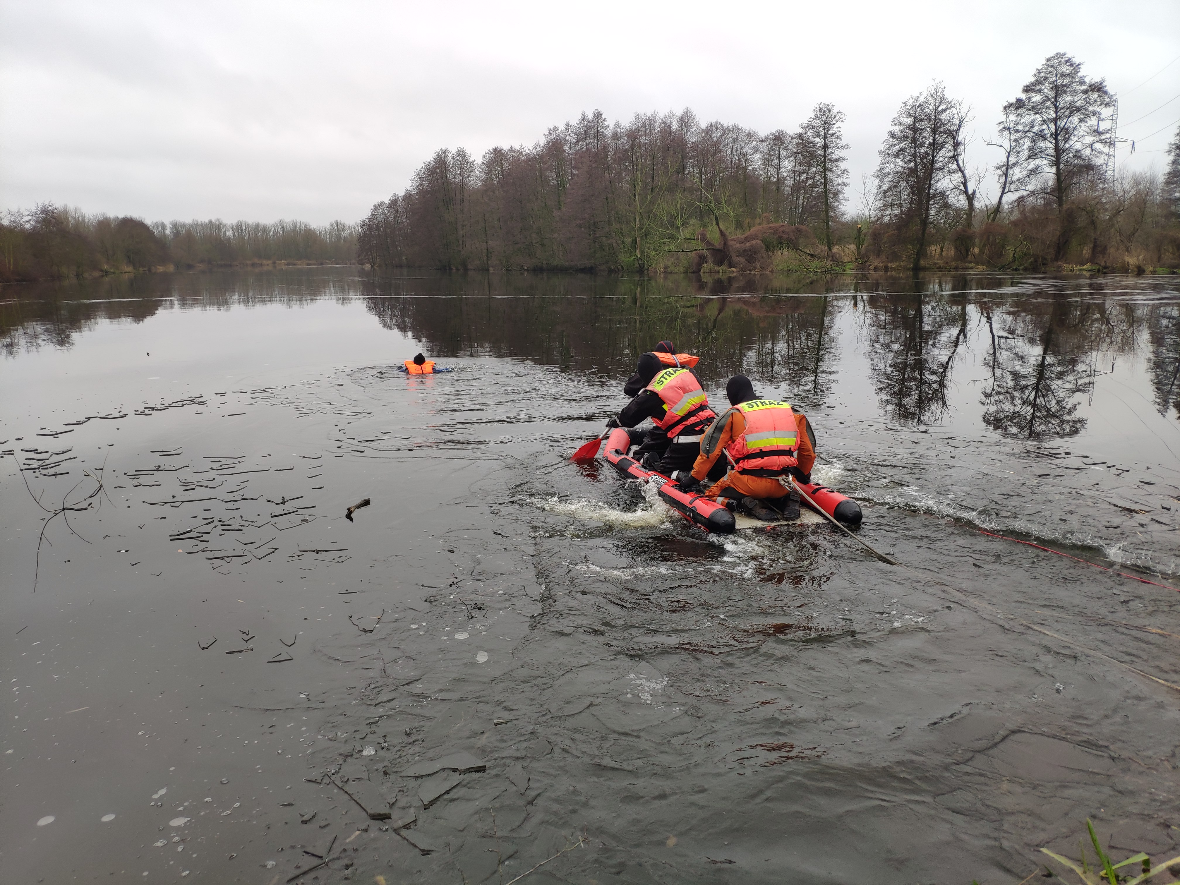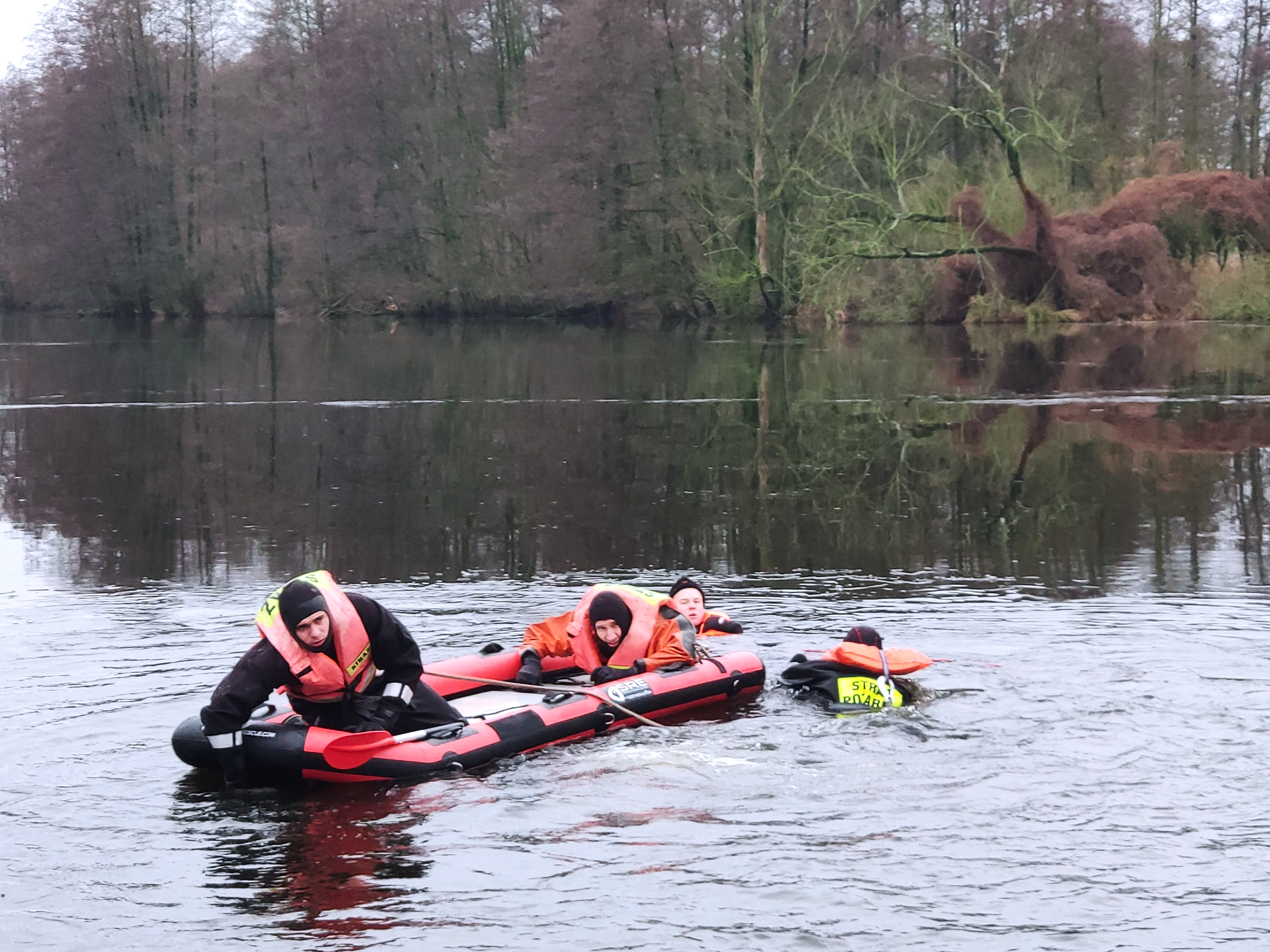 Strażacy wraz z uczniami klasy pożarniczej ćwiczyli techniki ratowania osób, pod którymi zarwał się lód. Użyto po raz pierwszy deski lodowej, która jest na naszym stanie od końca 2021 roku. Nowa deska lodowa jest bardzo lekka, może być transportowana przez jednego ratownika. Przygotowanie jej do działań nie powoduje zbędnej zwłoki , na lodzie i wodzie jest bardzo stabilna i zarazem zwrotna.