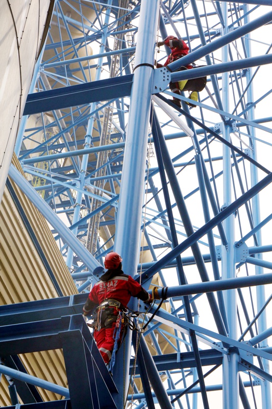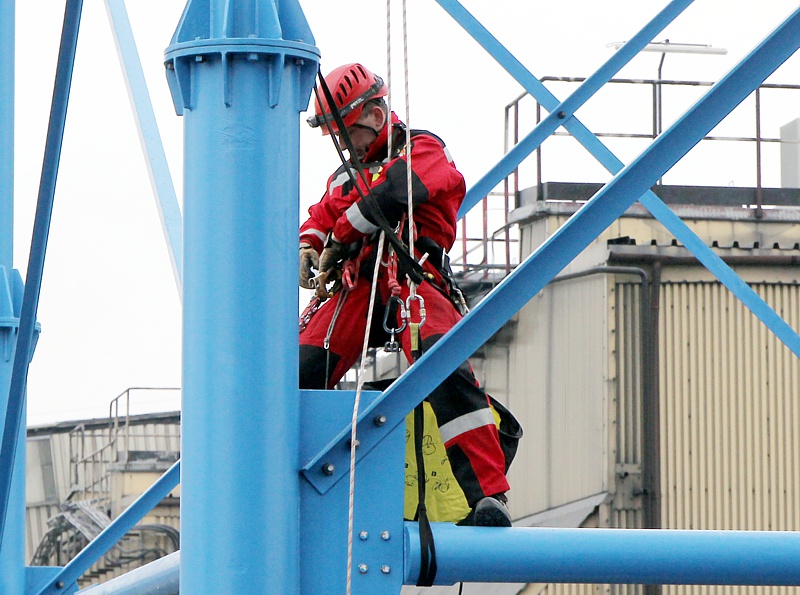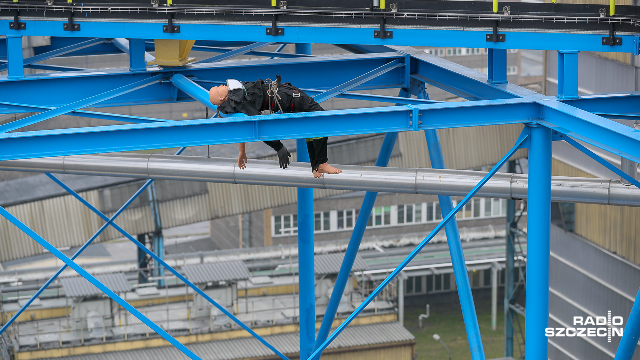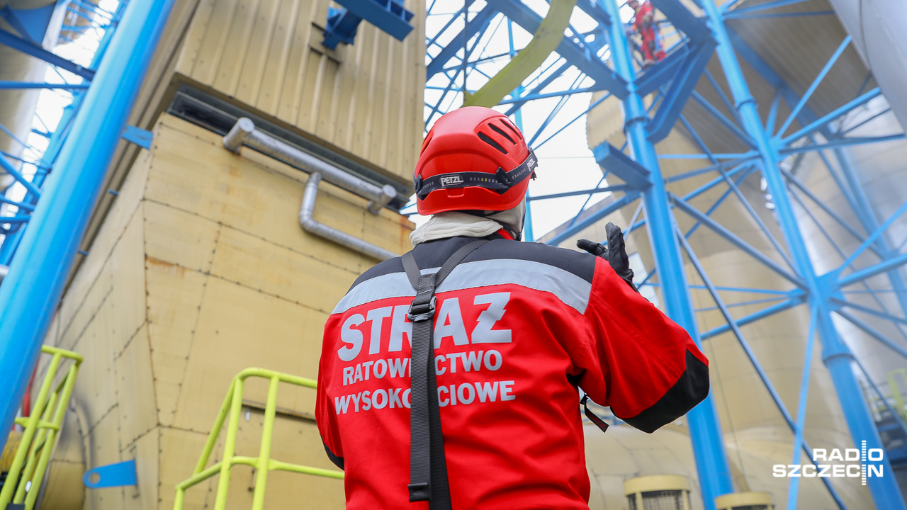 2. Ewakuację rannego pracownika GA Police z komina o wysokości ok. 100 m.