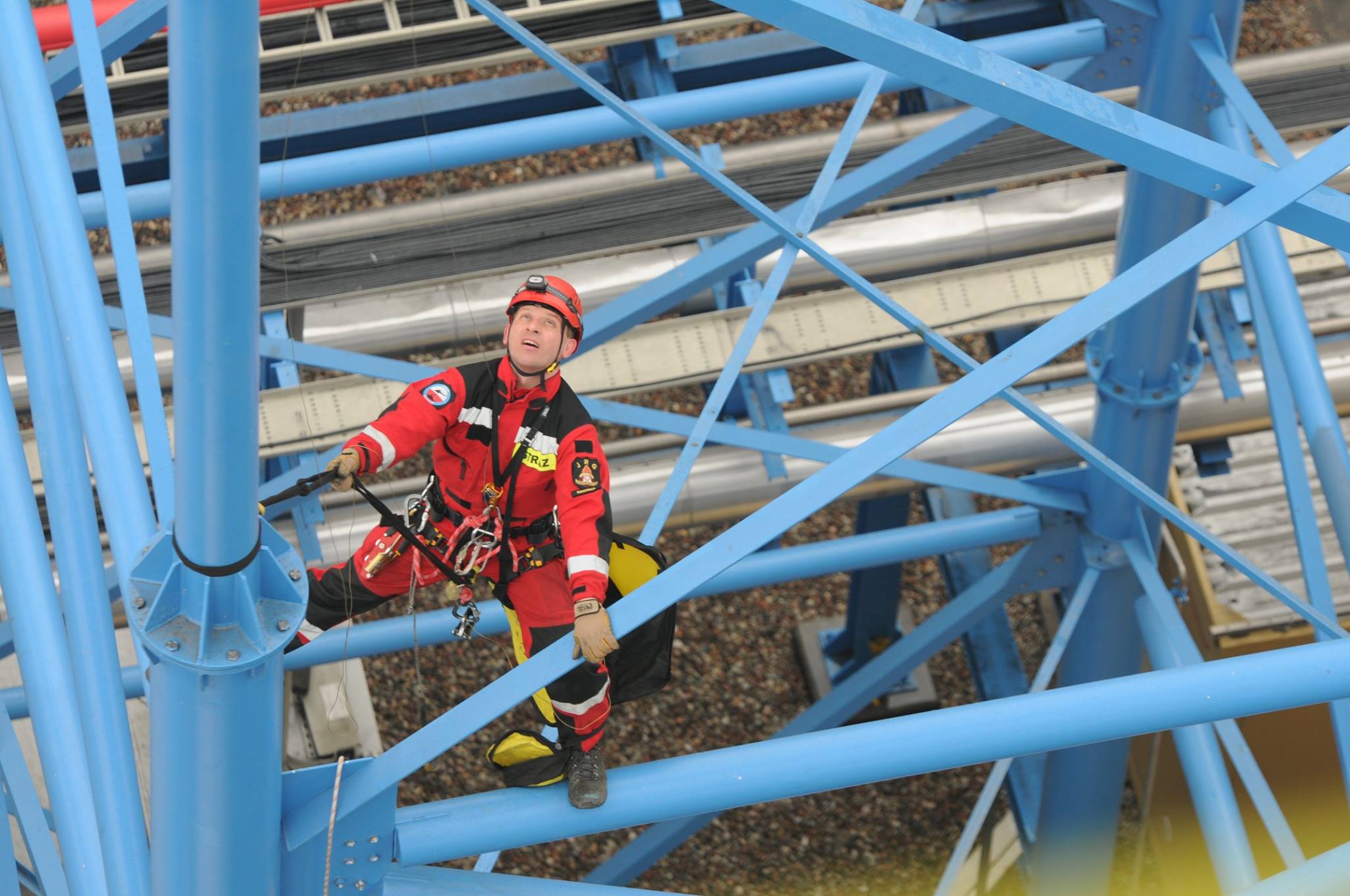 7. Ewakuację osoby nieprzytomnej z konstrukcji kratowej betonowej o wysokości ok. 20 m.