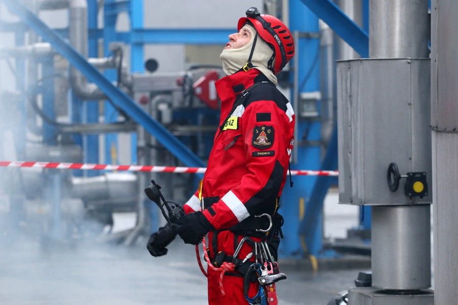1. Ewakuację osoby nieprzytomnej porażonej prądem elektrycznym oraz osoby przytomnej z objawami paniki z wysokości 43 m z wieży absorpcyjnej GA Police