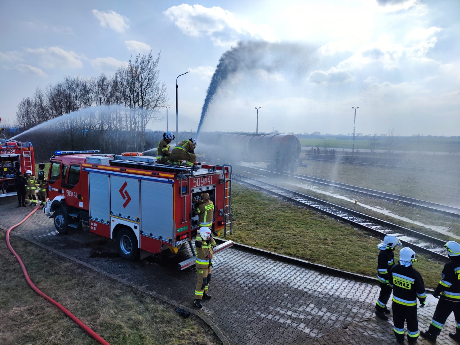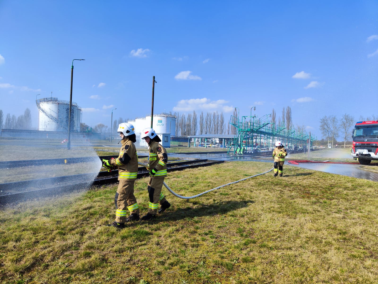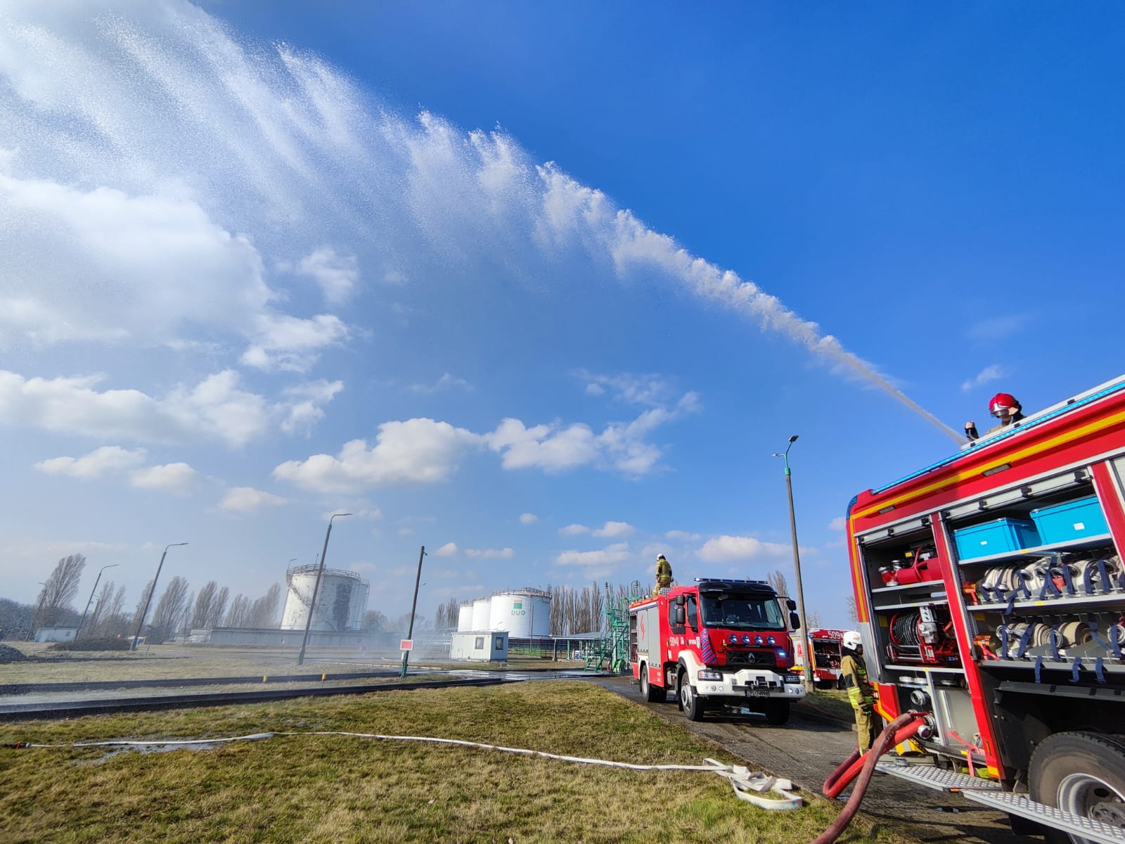 W dniu 9 marca 2024 r. funkcjonariusze z Jednostki Ratowniczo Gaśniczej w Policach wraz ze strażakami z OSP Dobra i OSP Kołbaskowo wzięli udział w ćwiczeniach obiektowych na terenie zakładu zwiększonego ryzyka J&S ENERGY S.A. w Stobnie. Uczestniczyli w nich również pracownicy zakładu, uczniowie klasy pożarniczej Zespołu Szkół im. Ignacego Łukasiewicza w Policach oraz obserwatorzy reprezentujący Koleje Bałtyckie.