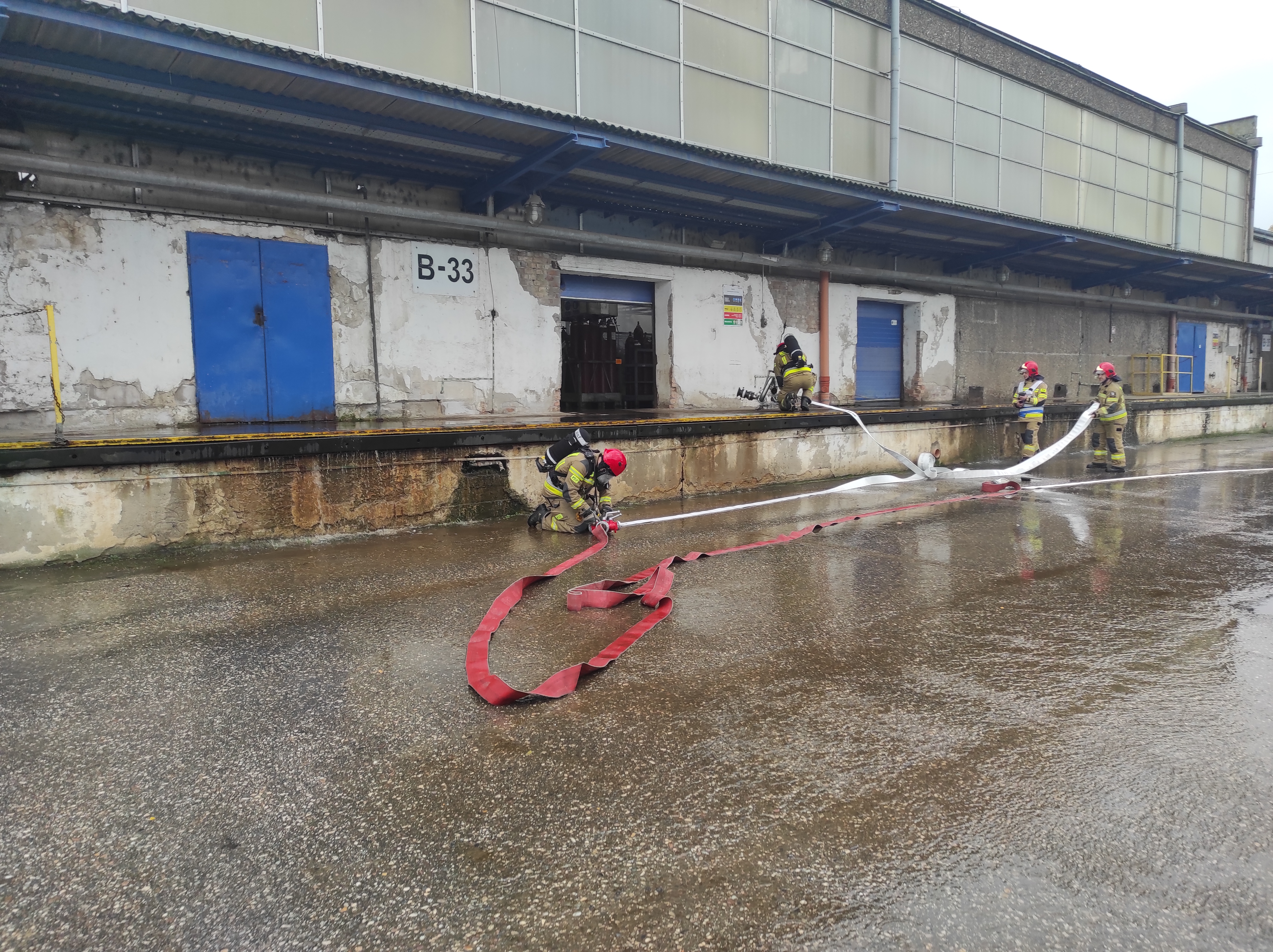 z bezpieczeństwem pożarowym wdrożonych w opracowanej dla tego przedsiębiorstwa dokumentacji. Sprawdzenie to obejmowało zarówno postępowanie pracowników od chwili powstania zagrożenia do przyjazdu pierwszego zastępu jednostki ochrony przeciwpożarowej, jak i późniejszej współpracy z kierującym działaniami ratowniczymi.