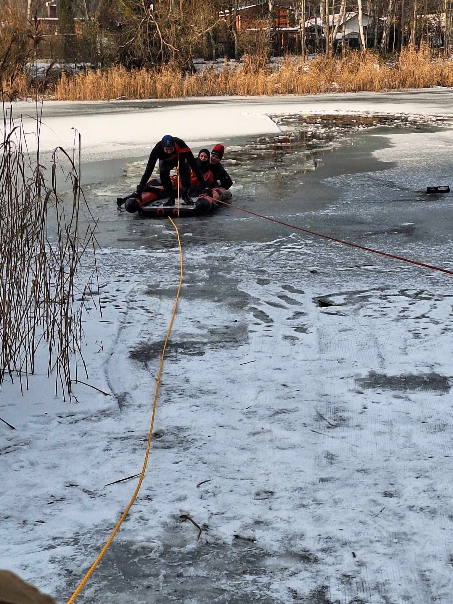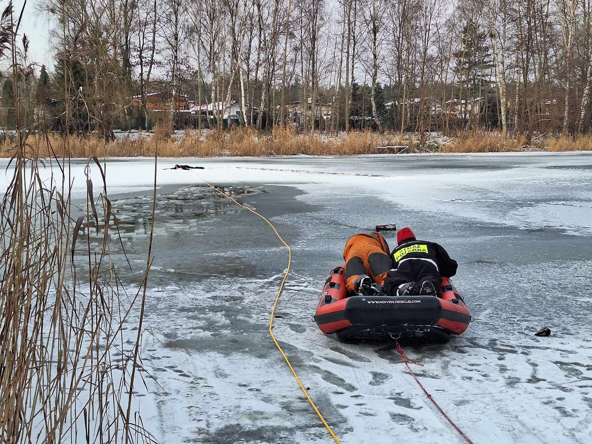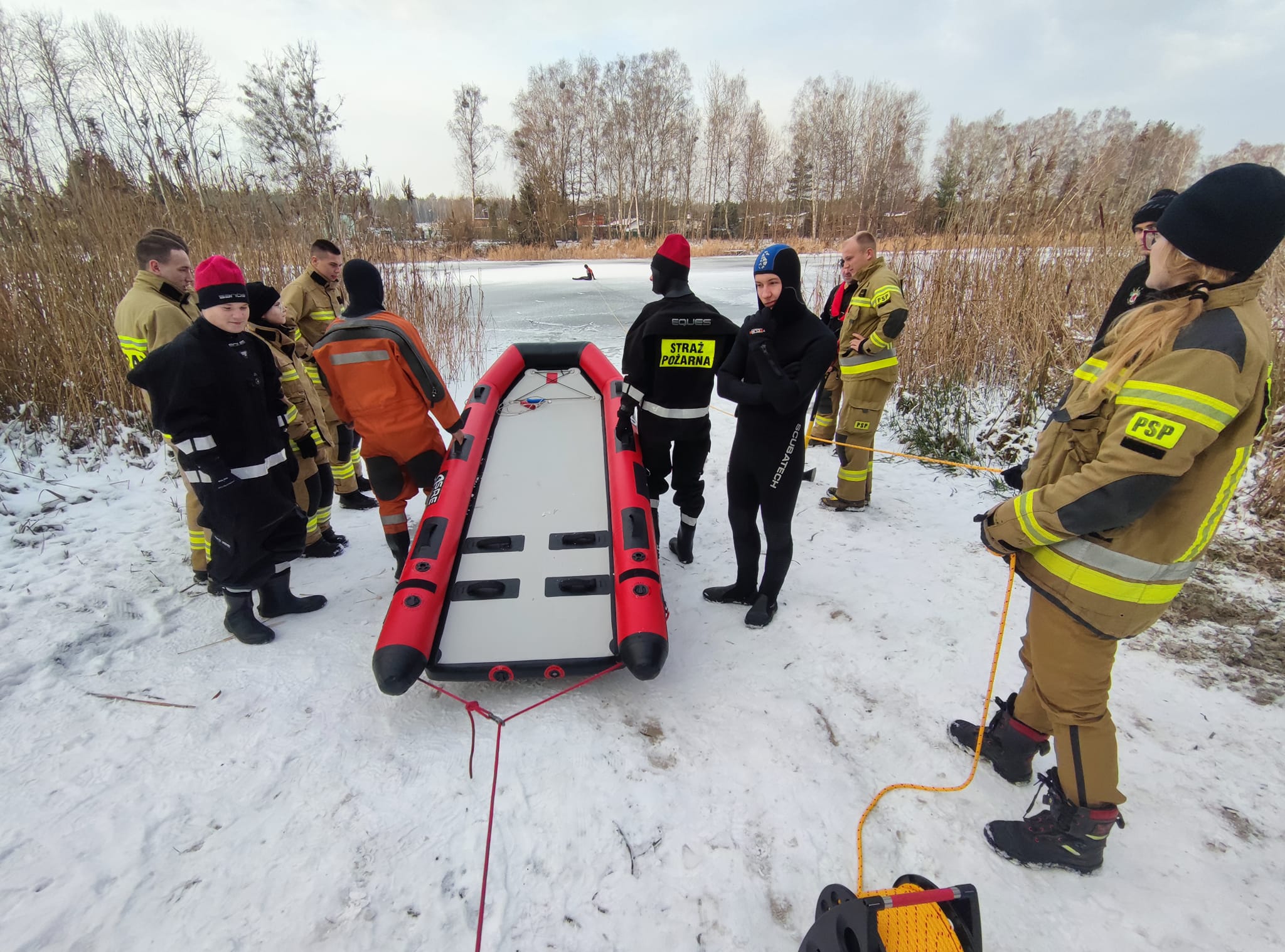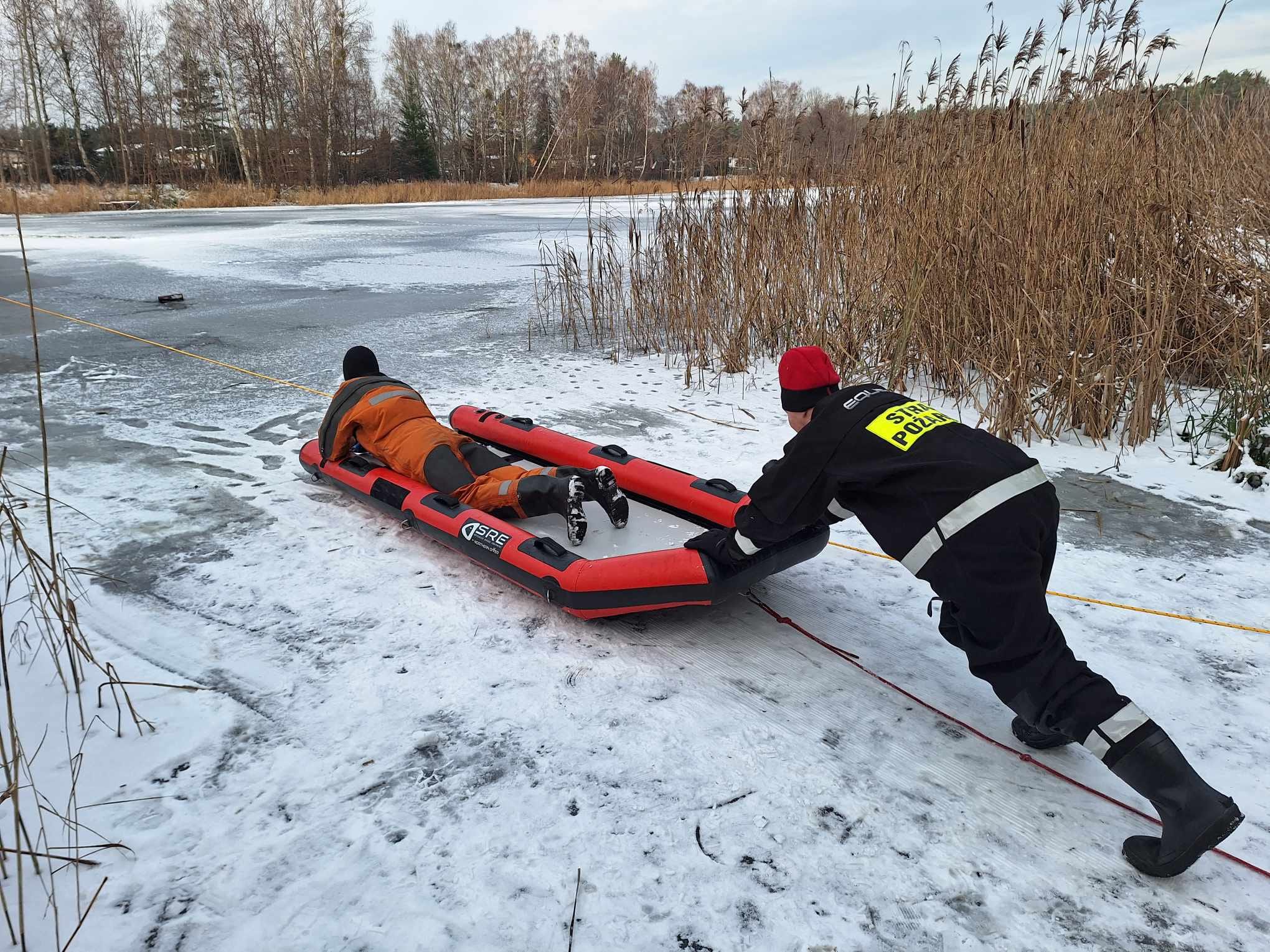 5 grudnia strażacy z Jednostki Ratowniczo Gaśniczej w Policach, zgodnie z wieloletnią praktyką doskonalili techniki ratownictwa lodowego. Scenariusz ćwiczeń obejmował dotarcie do osoby, która wpadła do przerębla, wydostanie jej z wody i transport na brzeg akwenu.