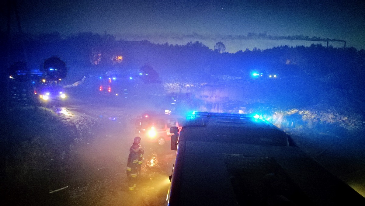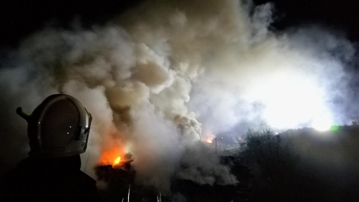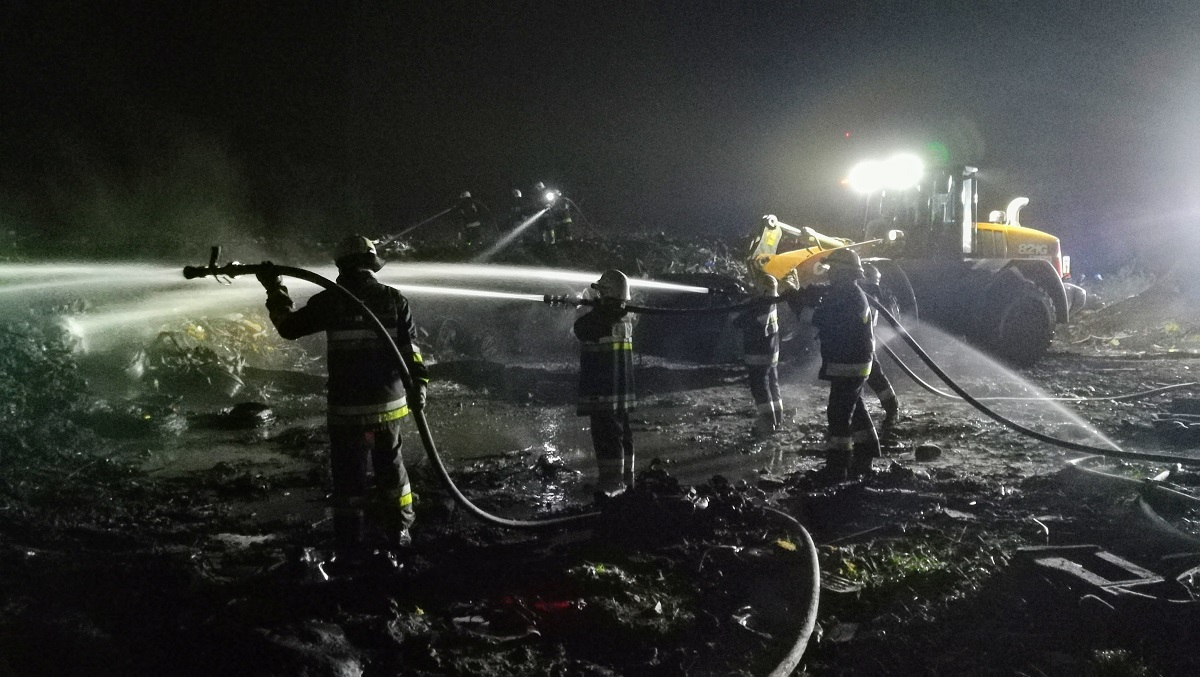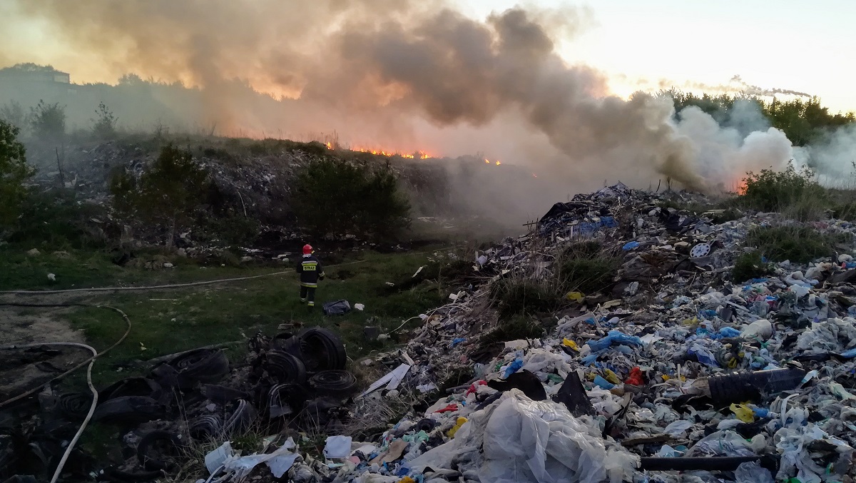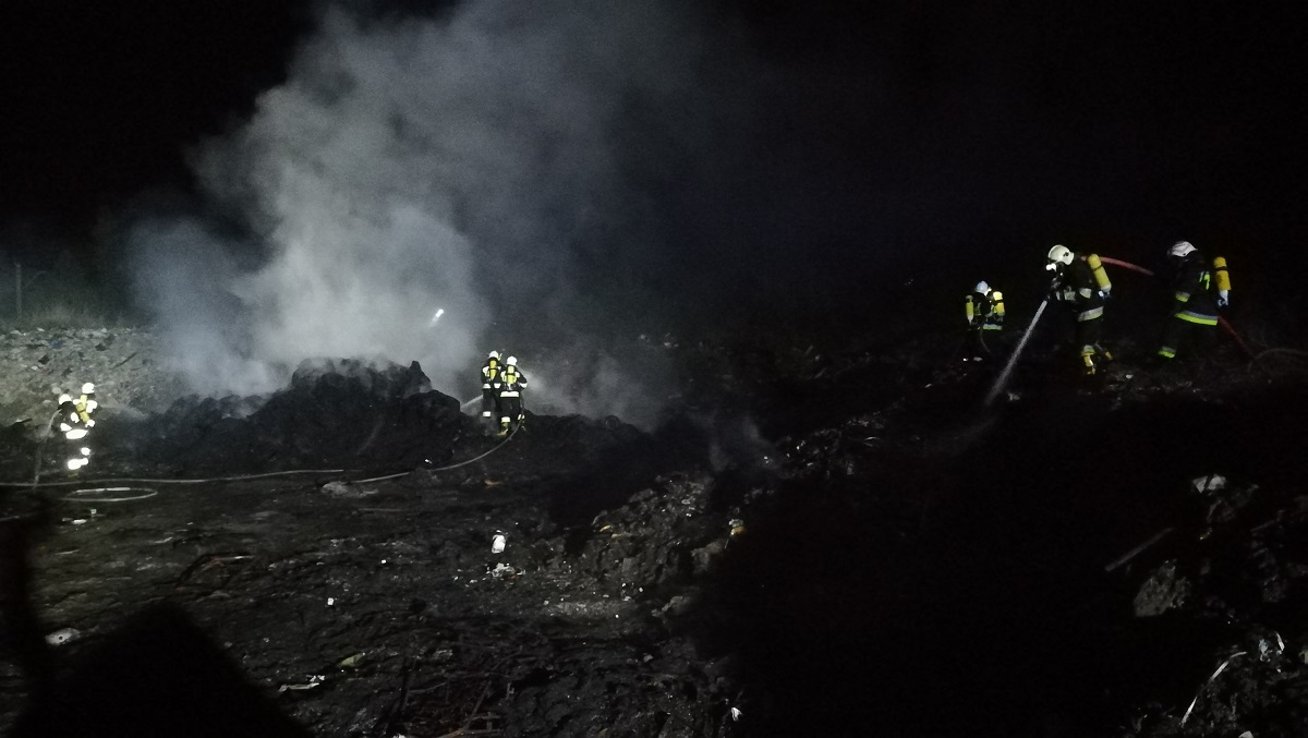 Zgłoszenie o pożarze składowiska odpadów do stanowiska kierowania wpłynęło o godzinie 19.45. Po przybyciu na miejsce zdarzenia pierwszych zastępów i przeprowadzeniu rozpoznania stwierdzono, że palą się hałdy odpadów o łącznej powierzchni ok. 1000 m2 w trzech różnych miejscach składowiska, prawdopodobnie spowodowane przez podpalenie.