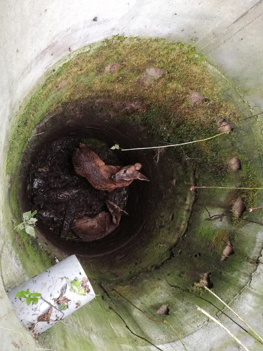 29 września o godz. 15:16 stanowisko kierowania otrzymało zgłoszenie, że przy ulicy Letniej w Tanowie w niezabezpieczonej betonowej studni od kanalizacji deszczowej są uwięzione dwie sarny oraz kot.