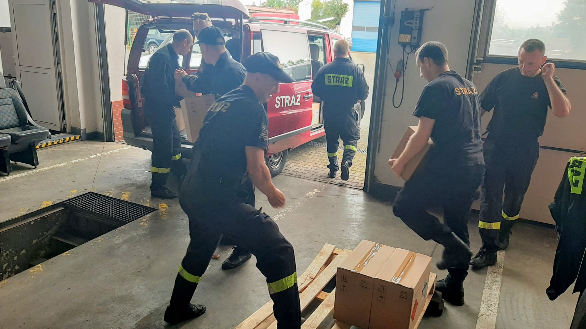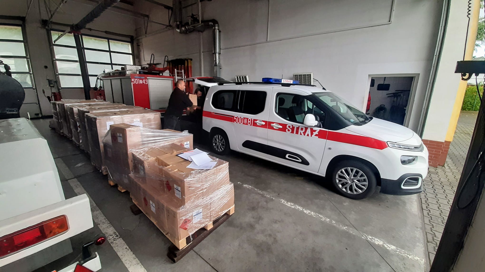 31 sierpnia strażacy z Komendy Powiatowej PSP w Policach dystrybuowali środki ochrony indywidualnej z Agencji Rezerw Materiałowych do szkół i innych placówek oświatowych na terenie powiatu polickiego. Łącznie dostarczono 15800 szt. maseczek i 4080 litrów płynu dezynfekującego.