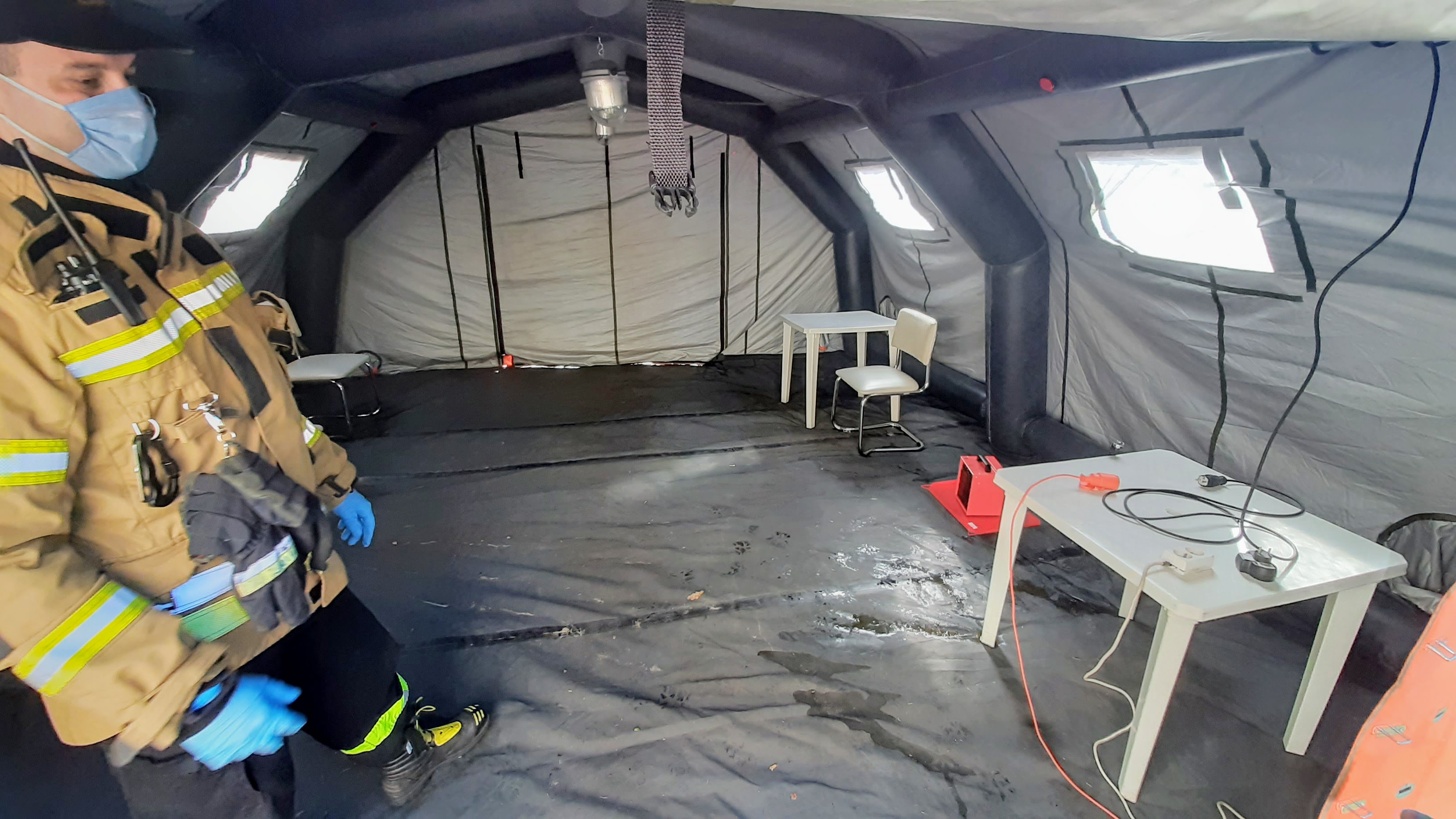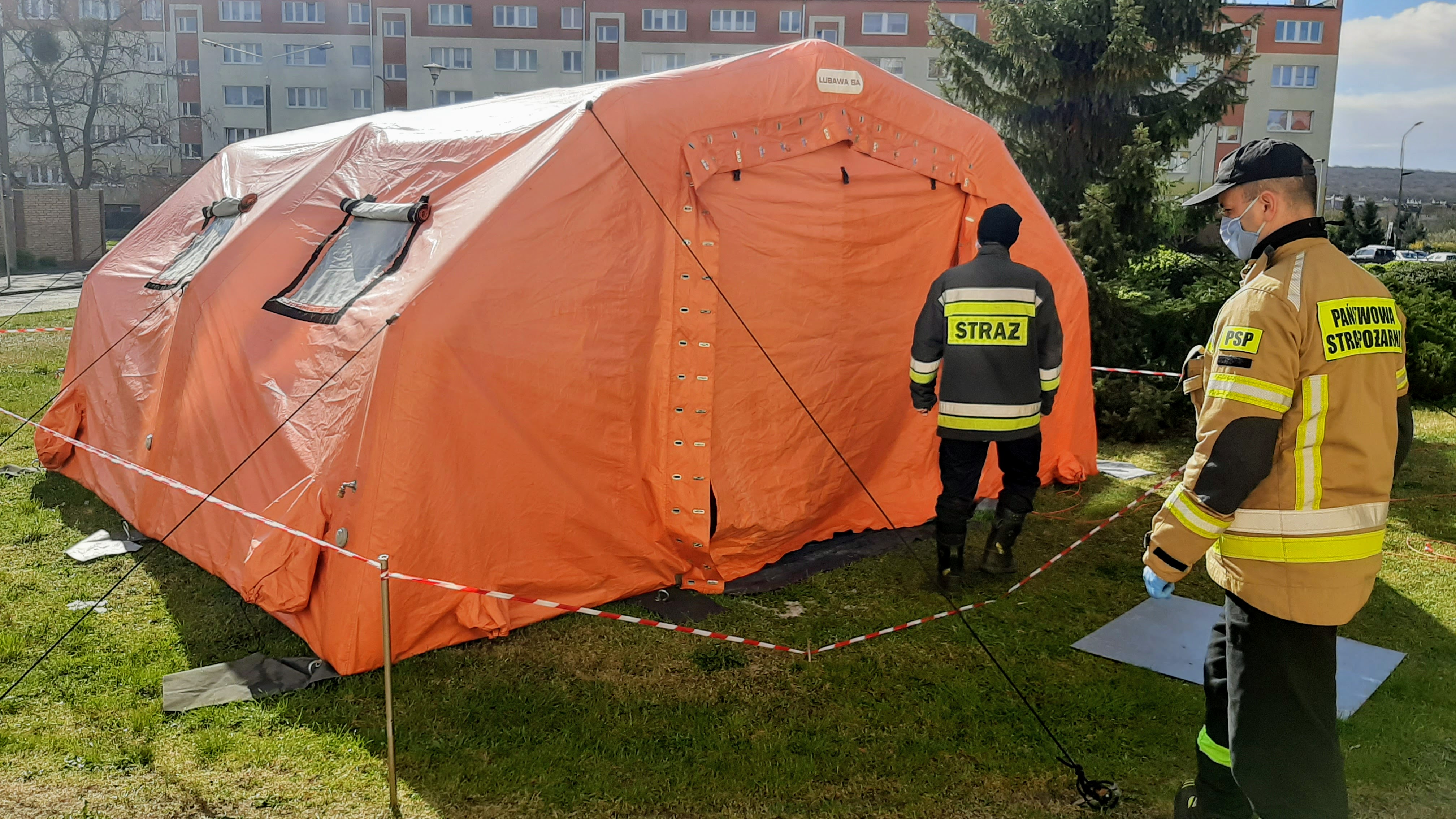 Ponadto funkcjonariusze komendy powiatowej PSP nadzorowali pod względem technicznym polową izbę przyjęć przed polickim szpitalem.