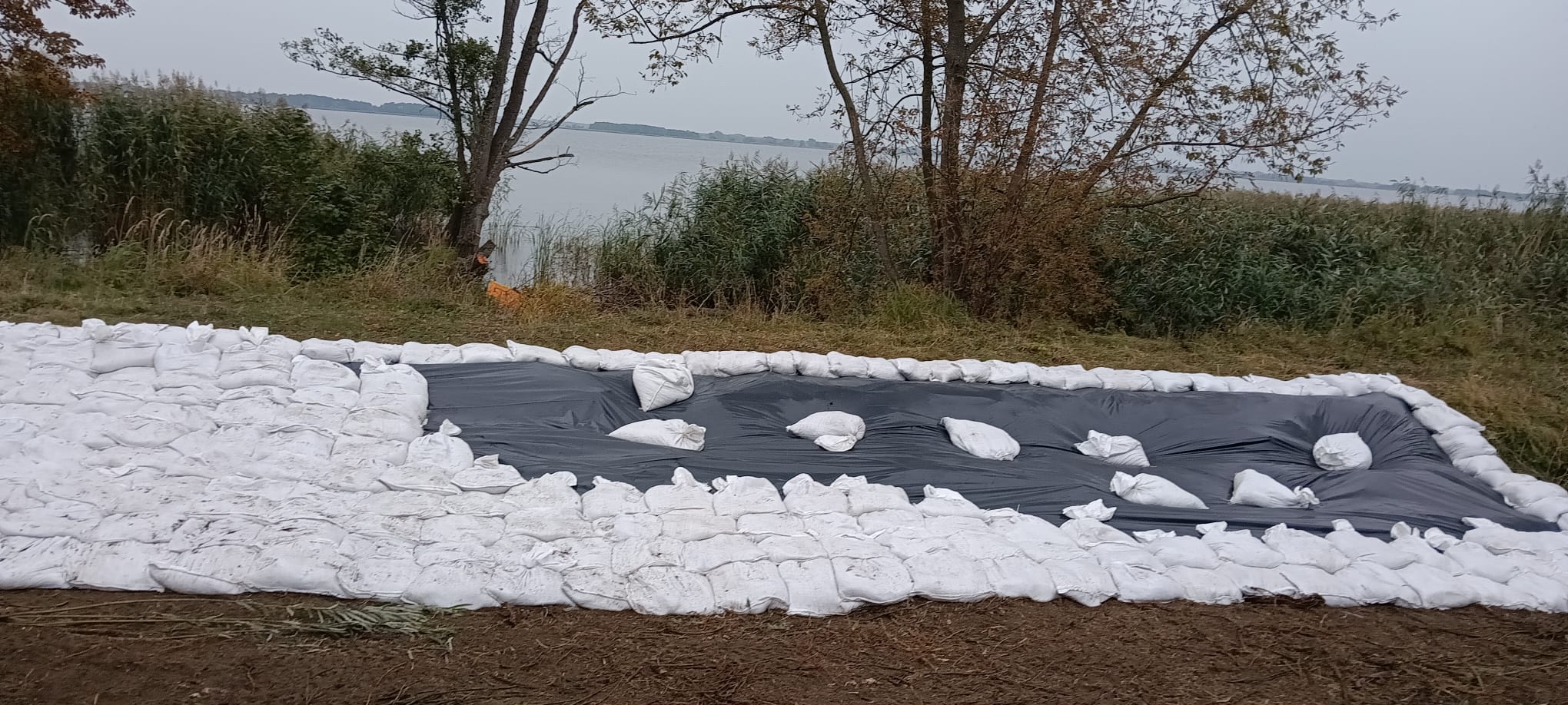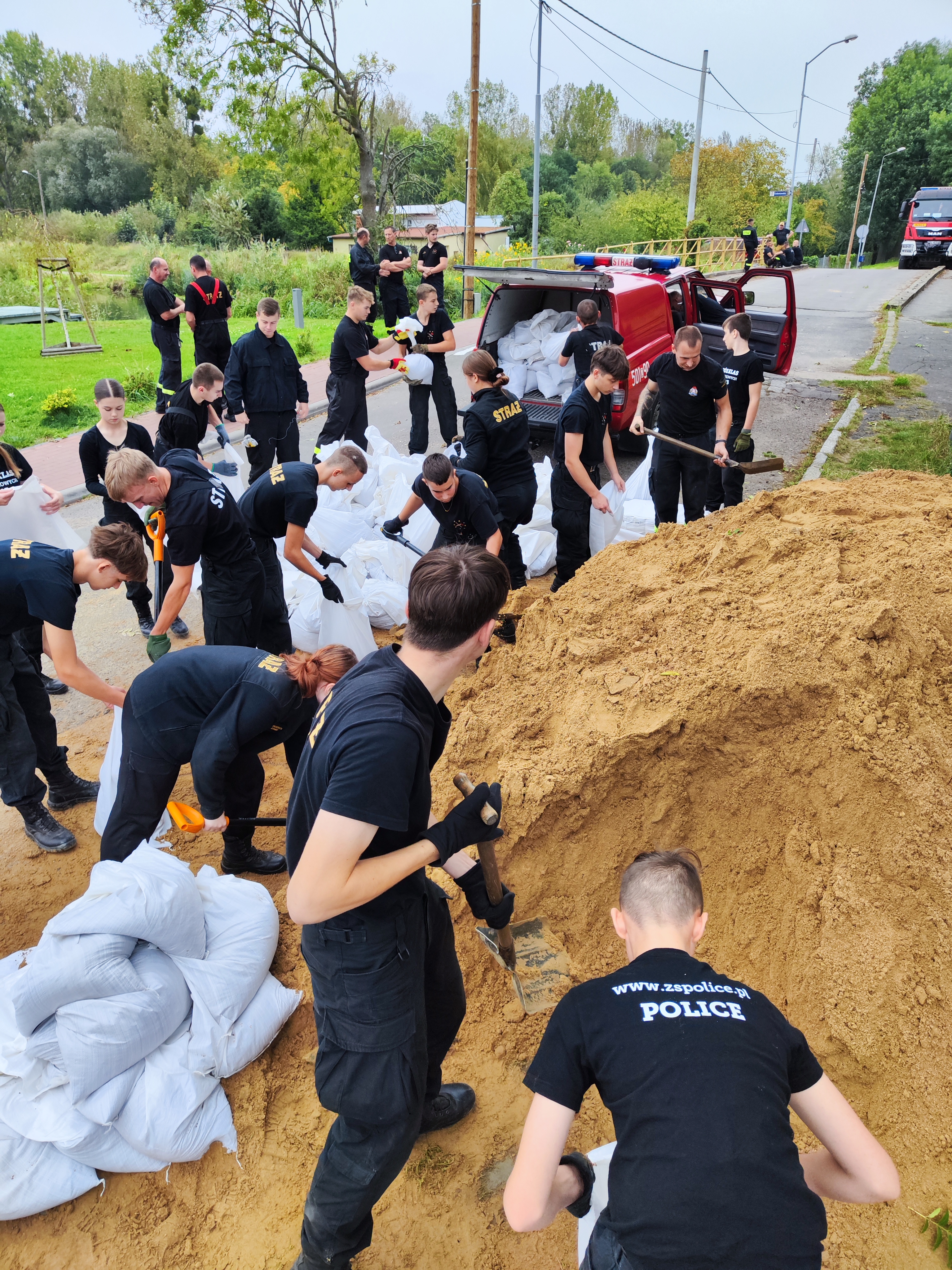 W godzinach popołudniowych przystąpiono do działań związanych z doraźną naprawą wykrytych do tej pory uszkodzeń i ubytków w wałach przeciwpowodziowych. W Trzebieży przy ulicy Kwiatkowskiego strażacy z miejscowej OSP używając około 500 worków z piaskiem zabezpieczyli uszkodzony przez bobry odcinek wału o długości około 20 metrów. Strażacy z JRG we współpracy z OSP w Policach, Tanowie i Tatyni oraz uczniami klasy pożarniczej przygotowali około 1500 worków z piaskiem w Policach przy ul. Goleniowskiej i doraźnie uzupełnili ubytki w trzech miejscach wzdłuż rzeki Łarpii.