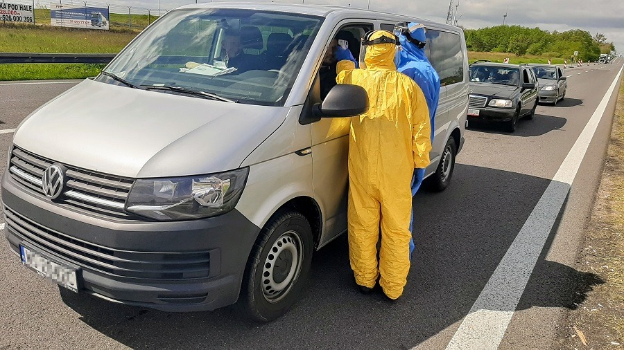 - mierzą temperaturę ciała osób wjeżdżających do kraju w punkcie kontroli sanitarnej na przejściu granicznym w Kołbaskowie oraz w porcie morskim w Policach i Trzebieży,