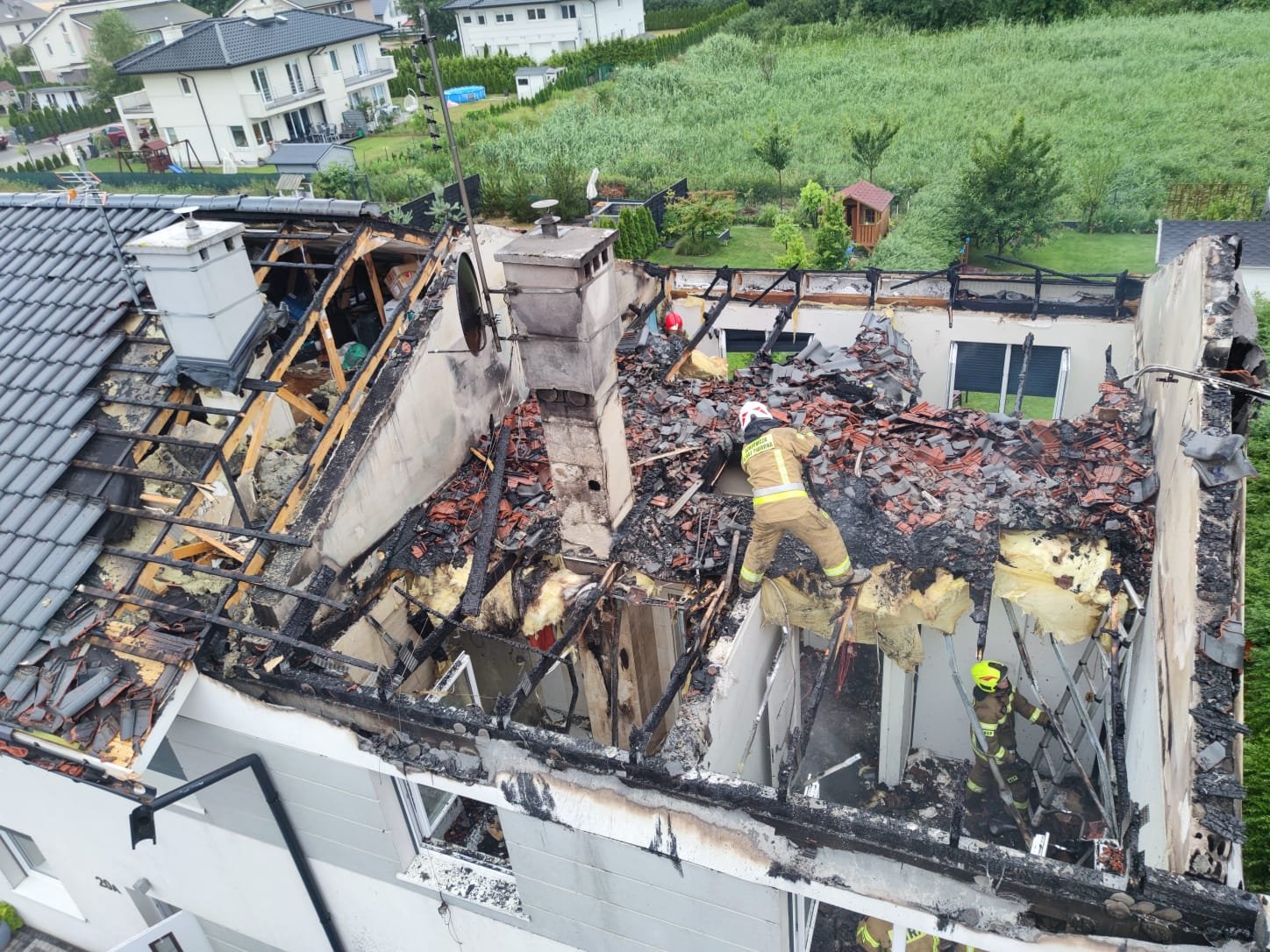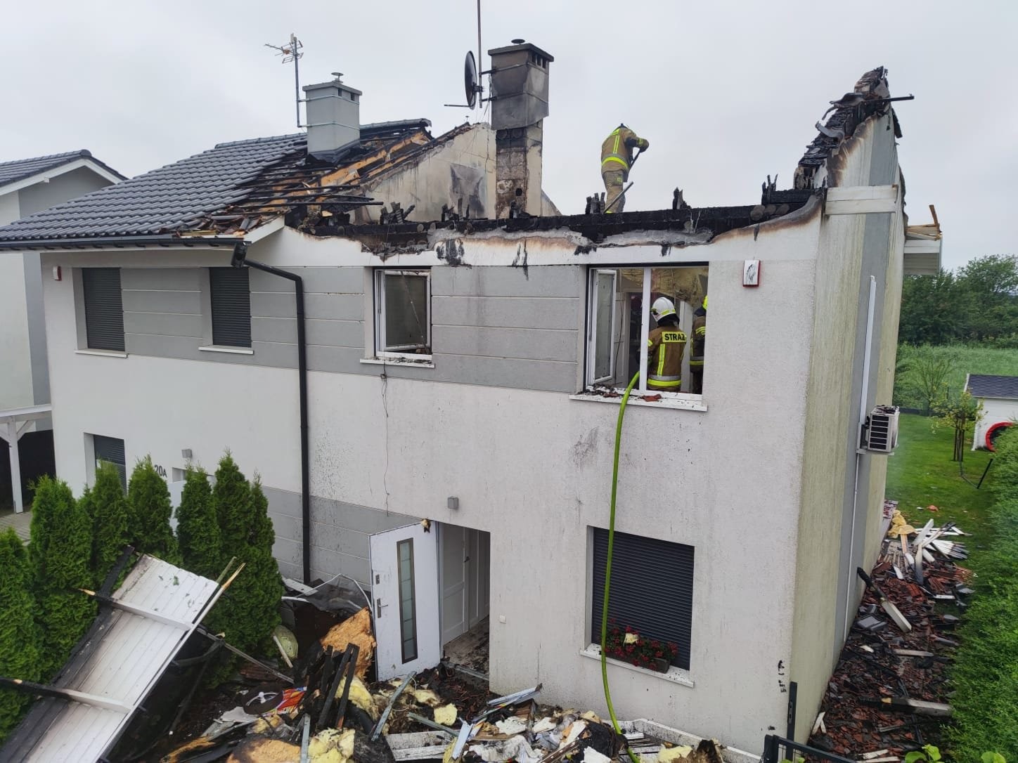 Na skutek popołudniowej burzy, która przeszła przez powiat policki strażacy interweniowali przy 13. zdarzeniach na terenie gmin Police, Dobra i Kołbaskowo. Najpoważniejszym był pożar dachu w budynku o zabudowie bliźniaczej przy ul. Promiennej w Bezrzeczu. Pożar powstał prawdopodobnie od uderzenia pioruna. W trakcie przyjazdu pierwszych zastępów na miejsce zdarzenia płomieniami objęta była już połowa dachu budynku. W działaniach trwających ponad 3 godziny zaangażowanych było 9 zastępów staży pożarnej m.in. z JRG PSP Police i Szczecin oraz z OSP Dobra i Wołczkowo. Osób poszkodowanych nie było.