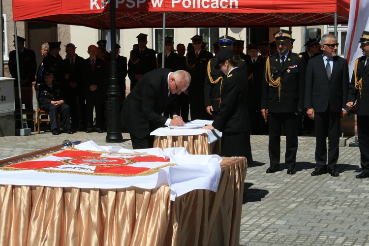 Powiatowe Obchody Dnia Strażaka połączone z nadaniem sztandaru Komendzie Powiatowej Państwowej Straży Pożarnej w Policach odbyły się w Nowym Warpnie w niedzielę, 15 czerwca br. Uroczystość rozpoczęła się o godz. 12.00 Mszą św., w trakcie której sztandar został poświęcony oraz odbyło się złożenie darów.