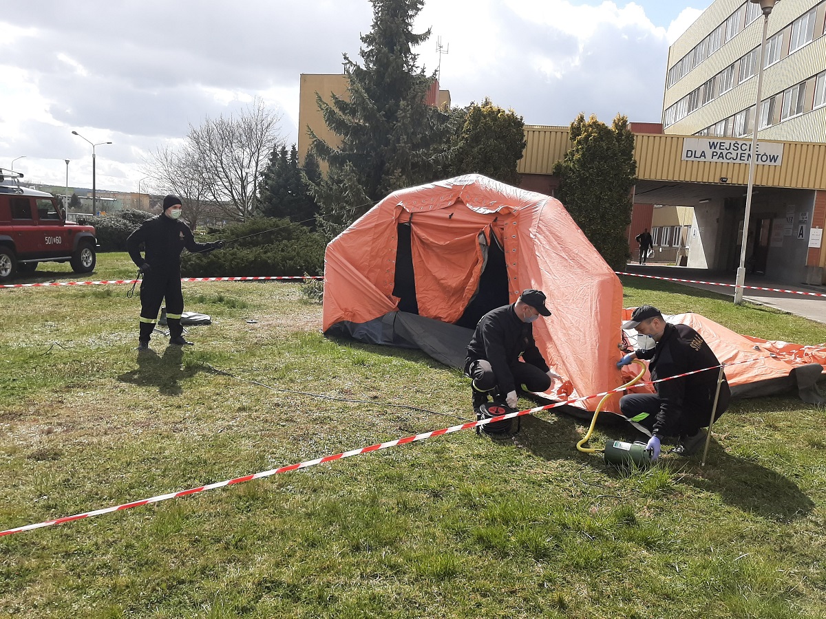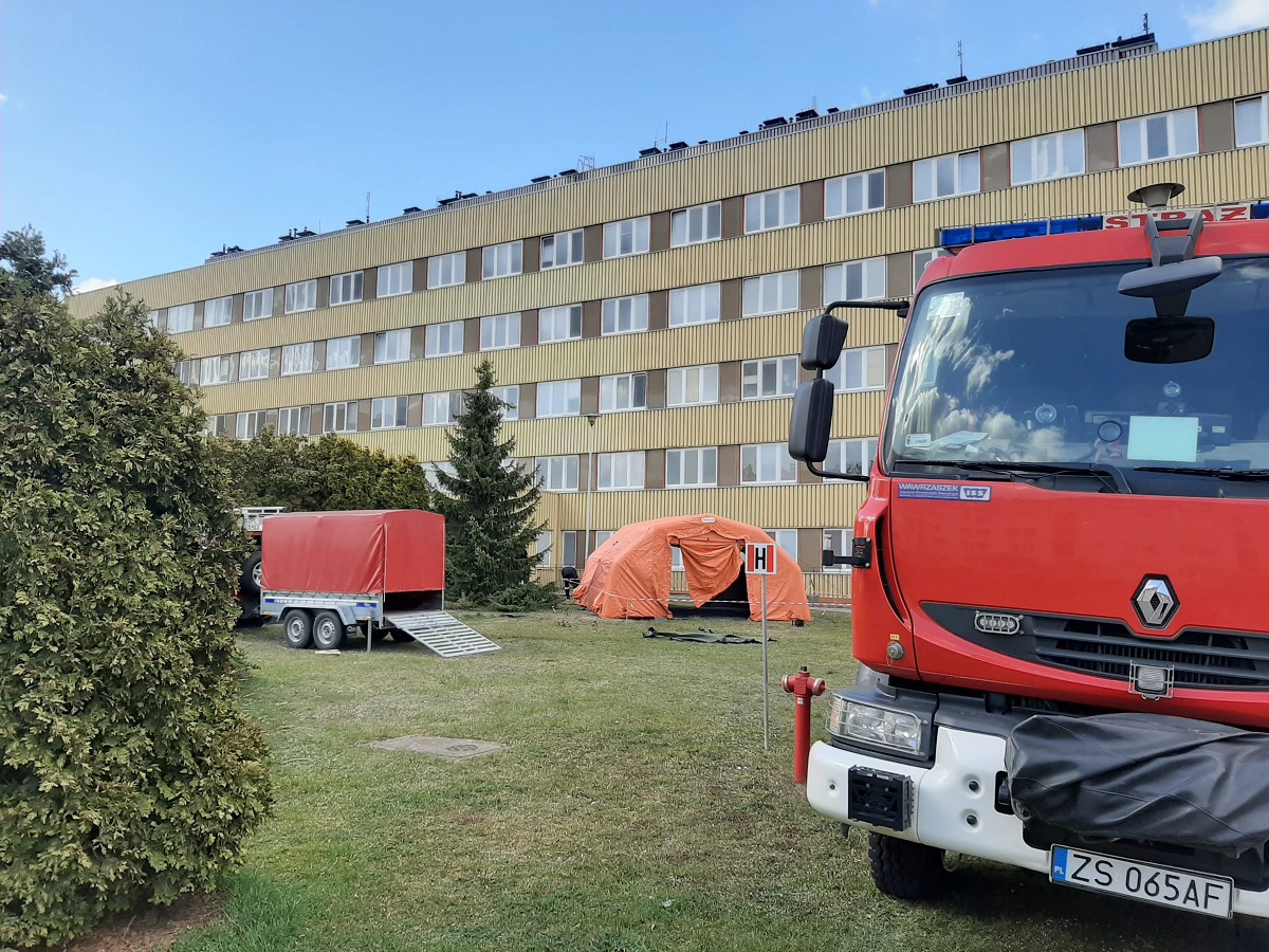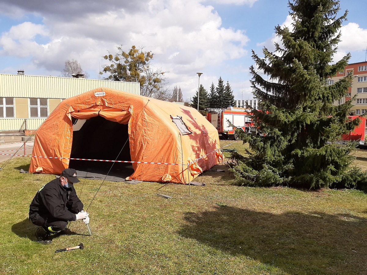 3 kwietnia strażacy z polickiej jednostki ratowniczo-gaśniczej rozstawili namiot pneumatyczny przed Samodzielnym Publicznym Szpitalem Kliniczny Nr 1 PUM w Policach w ramach ograniczania rozprzestrzeniania się koronawirusa. W namiocie będzie prowadzony wywiad epidemiologiczny.