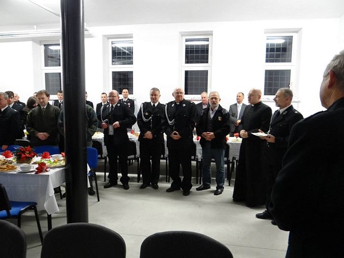 Nowo przebudowany obiekt poświęcił Kapelan Powiatowy Strażaków ks. Waldemar Szczurowski oraz złożył wszystkim przybyłym życzenia. Podczas spotkania nie zabrakło gratulacji i podziękowań z okazji wyjątkowego święta ze strony włodarzy powiatu, gminy oraz zaproszonych gości. Uroczystość przebiegła w podniosłej atmosferze zbliżających się Świąt Bożego Narodzenia, na której śpiewano wspólnie kolędy oraz dzielono się opłatkiem.