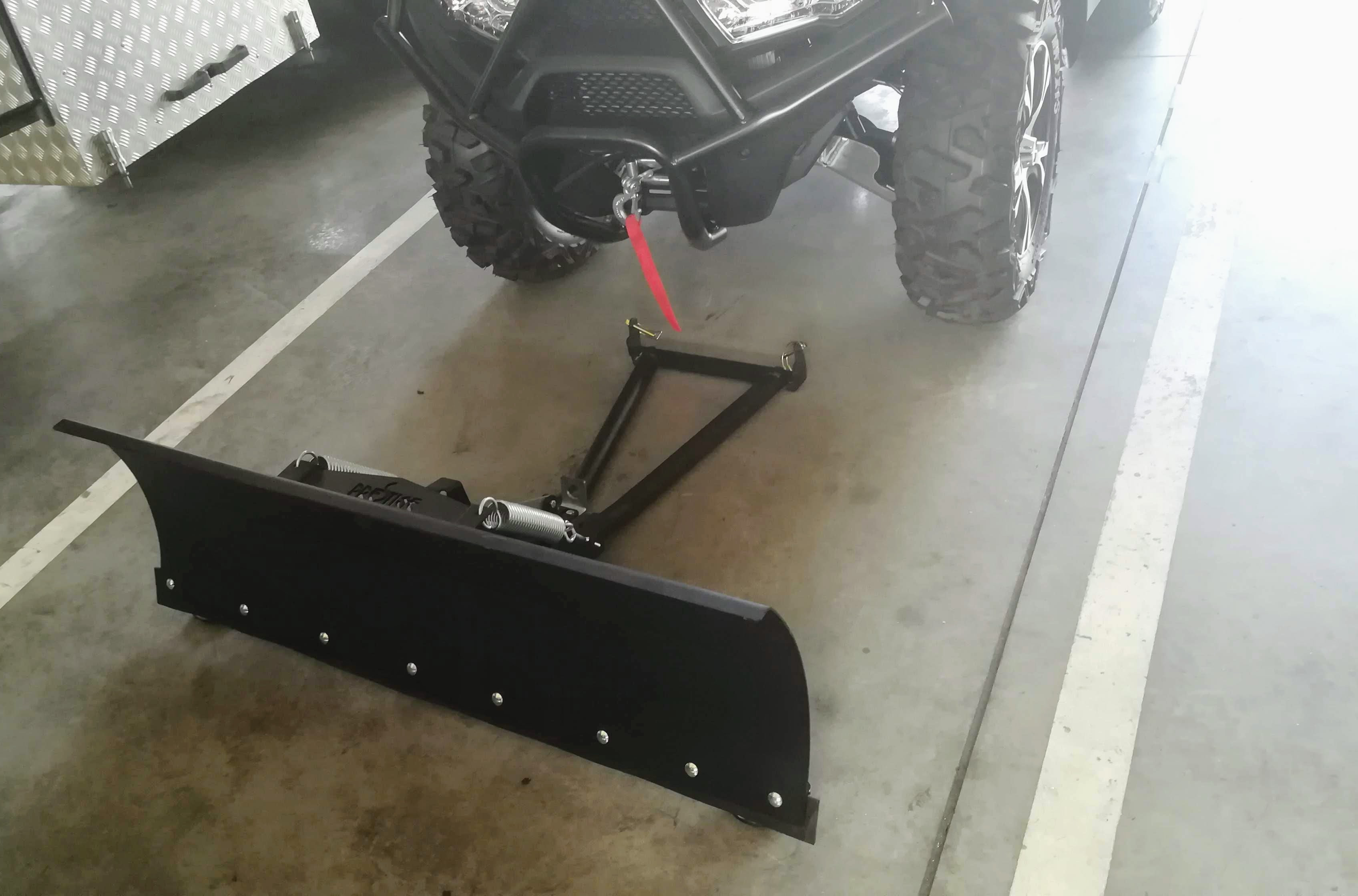 Dopuszczalna ładowność pojazdu wynosi 199 kg przy masie własnej 374 kg. Dodatkowo do pojazdu pozyskaliśmy pług do odśnieżania oraz przyczepkę dwuosiową do transportu.