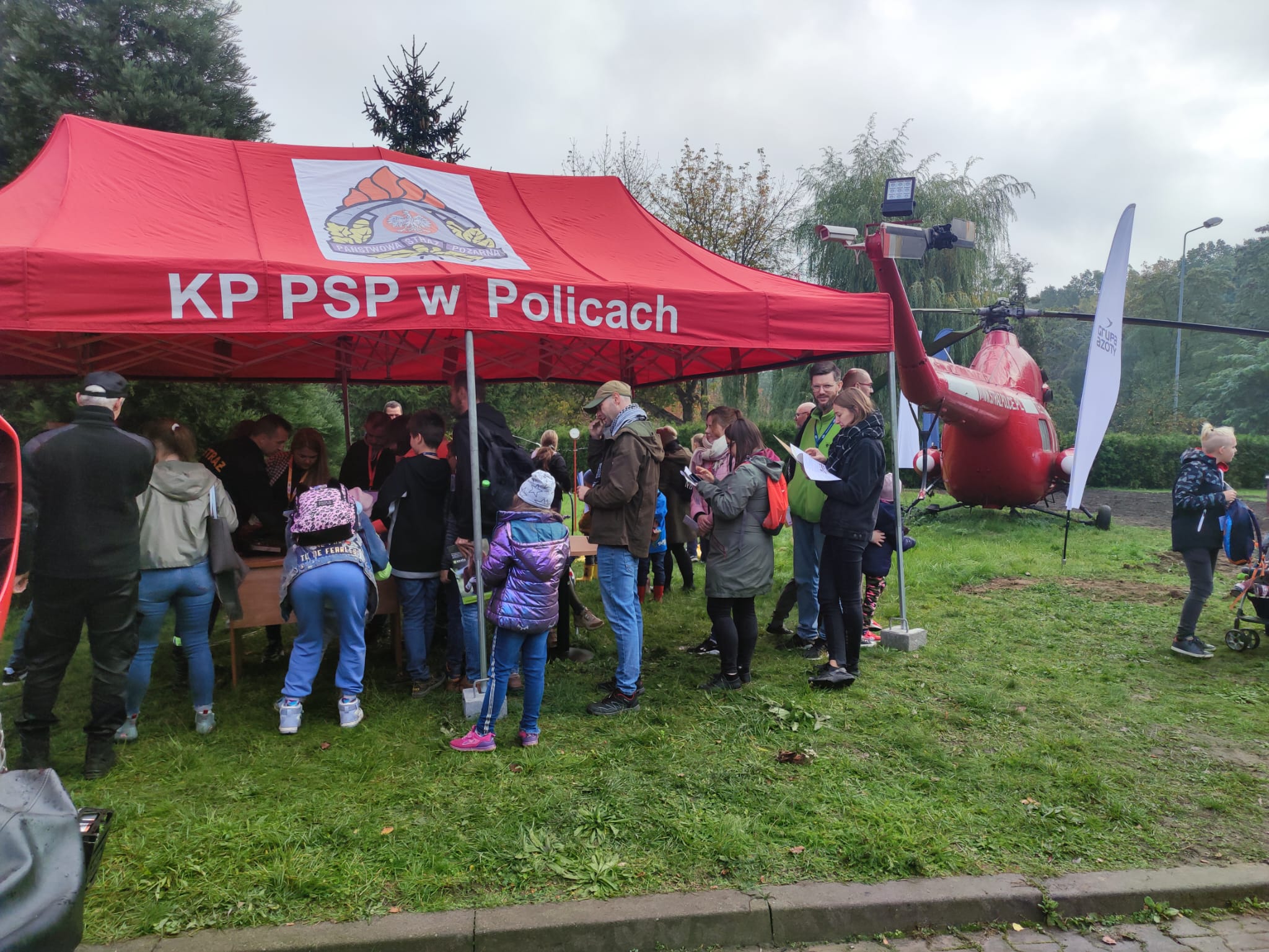 Przed siedzibą komendy odsłonięto tablicę upamiętniającą wydarzenie sprzed dwóch dekad dotyczące katastrofy lotniczej, która wydarzyła się podczas działań gaśniczych w lasach na terenie Nadleśnictwa w Trzebieży. Opisano na niej historię odkrywającą tajemnicę stojącego na naszym terenie śmigłowca, który niewątpliwie wyróżnia policką jednostkę spośród tysiąca innych. Uroczystość zbiegła się z inauguracją gry terenowej w formule questu historycznego, a i nasi strażacy przygotowali zadania specjalne dla pasjonatów aktywnego wypoczynku na świeżym powietrzu.