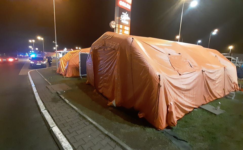 Ponadto informujemy, że od początku sprawdzania m.in. temperatury przez strażaków z JRG Police tj. od 15 marca oprócz naszego sprzętu logistycznego jak namioty pneumatyczne w punkcie kontroli w Kołbaskowie jest średni samochód ratownictwa chemicznego (SRChem). Na wyposażeniu auta znajduje się m.in. następujący sprzęt: odzież ochronna typ 1a i typ 3, sprzęt ochrony dróg oddechowych izolujący i filtrujący, kabina dekontaminacyjna, pirometr i kamera termowizyjna, zestaw przyrządów detekcyjno-pomiarowych do wykrywania substancji niebezpiecznych, agregat prądotwórczy z oprzyrządowaniem elektrycznym, zestaw ratownictwa medycznego PSP R1, mobilna elektroniczna stacja meteorologiczna, przenośny zestaw lamp i reflektorów do oświetlenia terenu, zestaw sorbentów, dyspergentów i neutralizatorów do ograniczania i usuwania rozlewów.