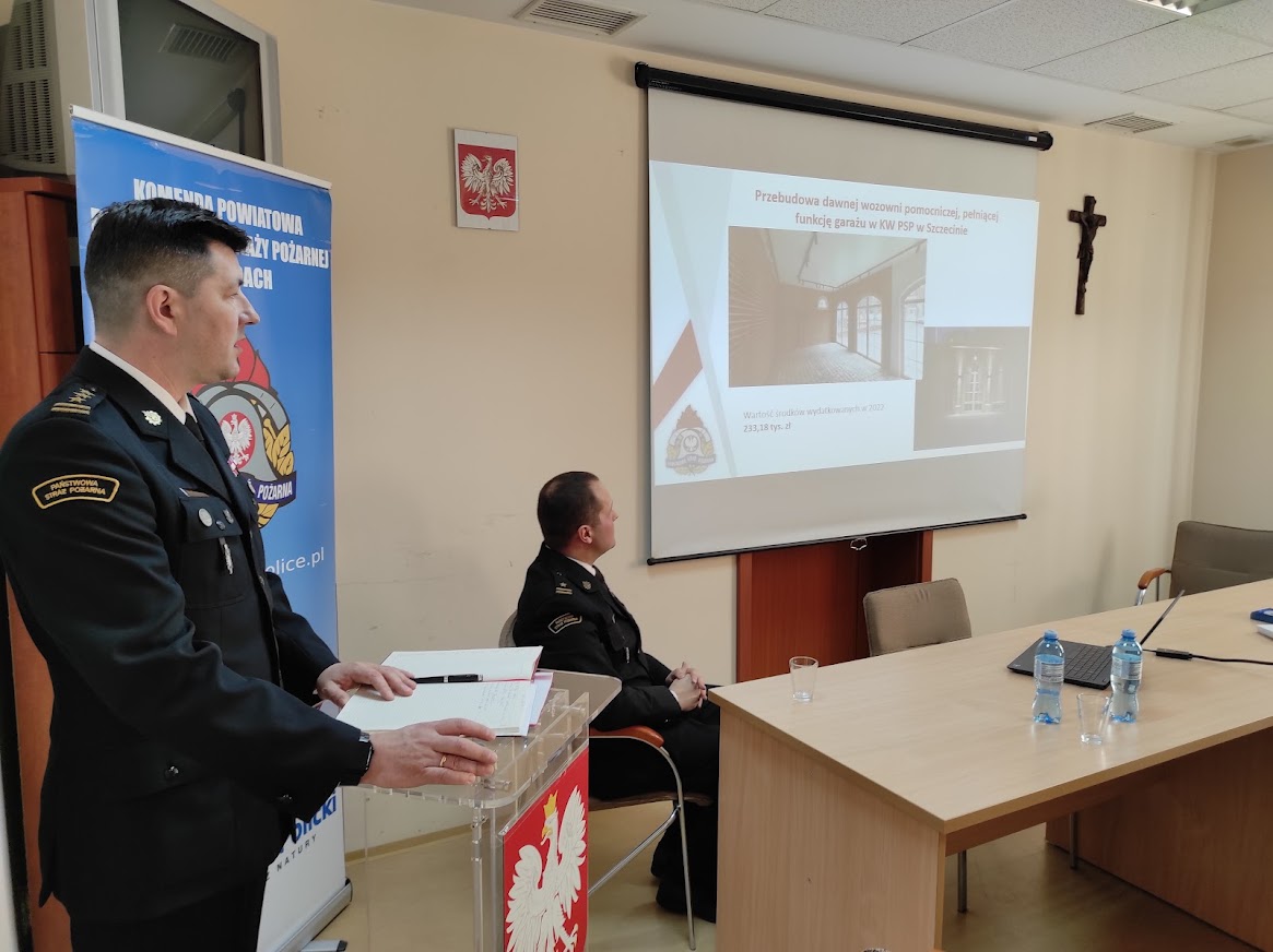 W siedzibie przy ulicy Tanowskiej, Komendant Powiatowy PSP w Policach mł. bryg. Piotr Maciejczyk podsumował działalność kierowanej przez siebie jednostki w roku 2022.