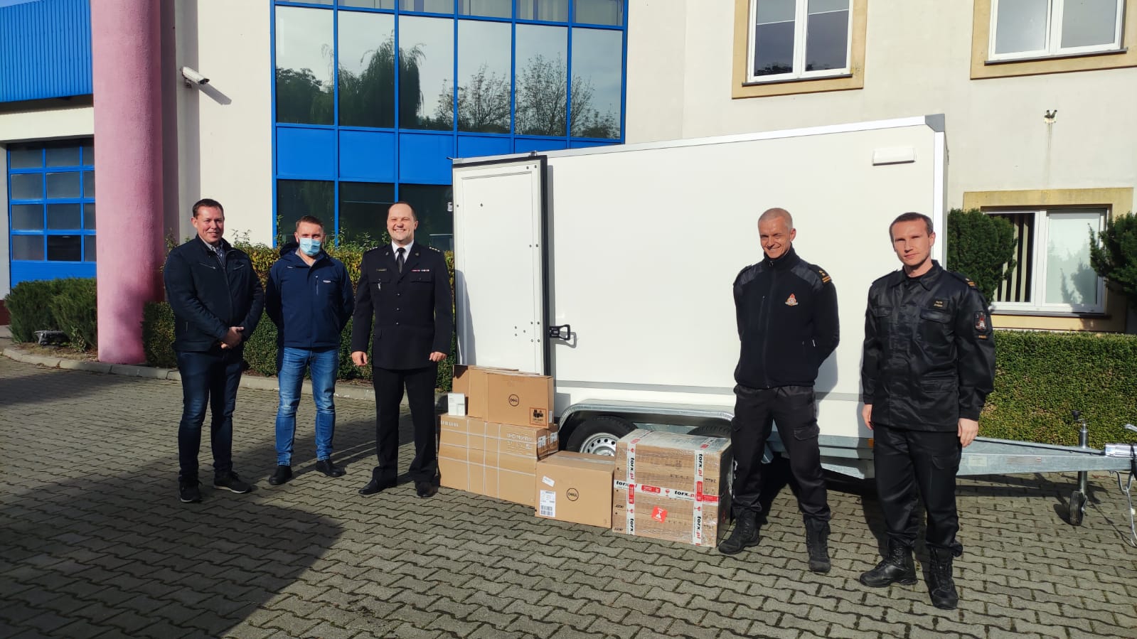 Komenda Powiatowa PSP w Policach dziękuje serdecznie za przekazaną w formie darowizny przyczepę ciężarową niezbędną do transportu armatury wodnej w prowadzonych działaniach ratowniczo-gaśniczych oraz sprzęt komputerowy wraz z oprogramowaniem o łącznej wartości 29 228 pln. W dniu 24 października w siedzibie komendy odbyło się kameralne spotkanie z Panem Danielem Jaśkiewiczem prezesem Fundacji Sedina HS, w celu podpisania umowy przekazania sprzętu, któremu towarzyszył przedstawiciel centrum logistycznego AMAZON w Kołbaskowie - Piotr Waszkielewicz. Otrzymany sprzęt będzie stanowił istotne wsparcie i z pewnością usprawni prowadzenie działań ratowniczych podejmowanych na terenie naszego powiatu. O skuteczności tego typu środków transportu i potrzebach związanych z doposażeniem w taki sprzęt mogliśmy się przekonać m.in. podczas deszczów nawalnych, które dotknęły mieszkańców gminy Kołbaskowo na przełomie lipca i sierpnia bieżącego roku. Pozyskana nowoczesna jednostka komputerowa z dodatkowymi monitorami uzupełni wyposażenie stanowiska kierowania i znacznie ułatwi pracę naszym dyżurnym. Dzięki darczyńcy, również pozostali nasi funkcjonariusze mogli wymienić wysłużone komputery przenośne.