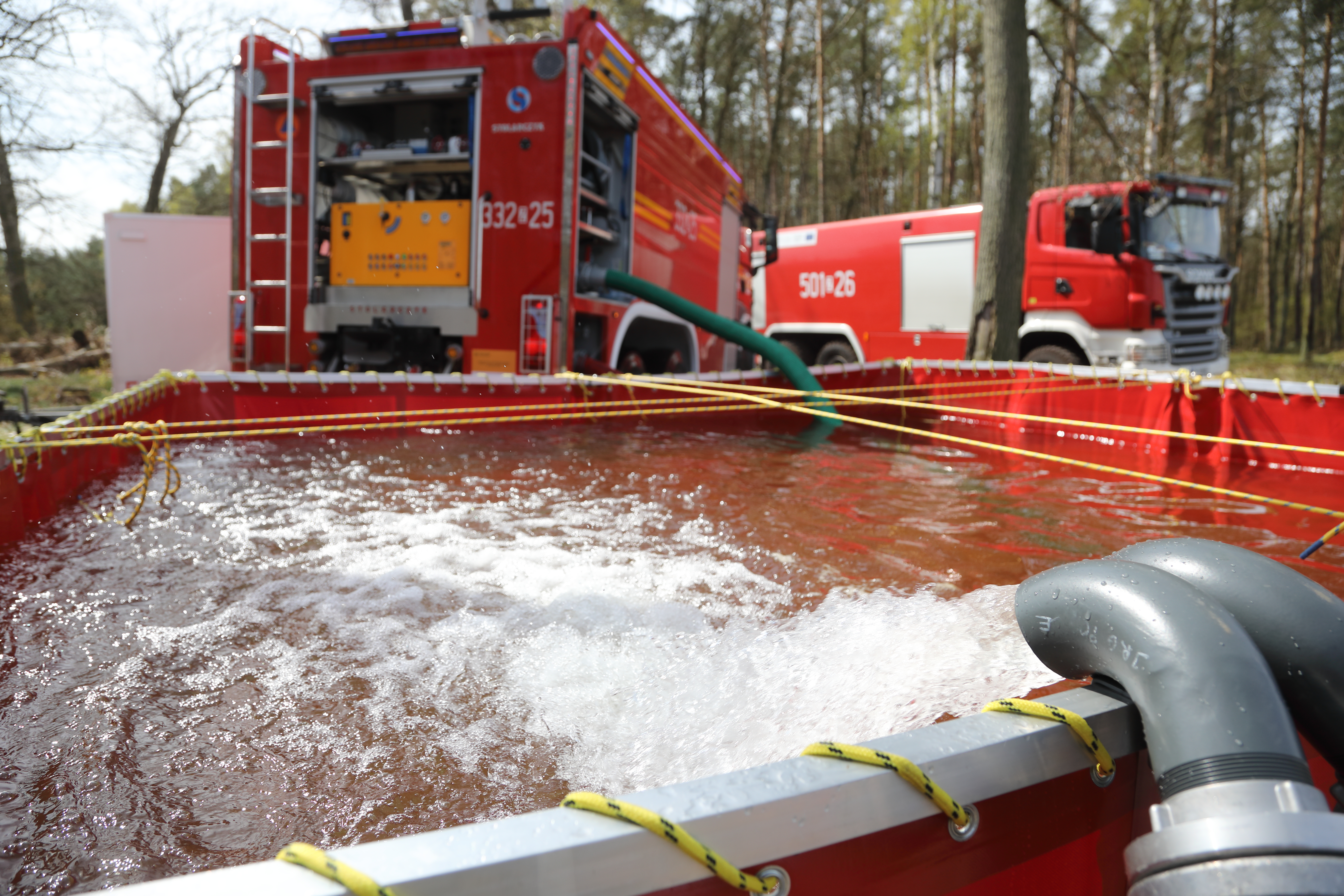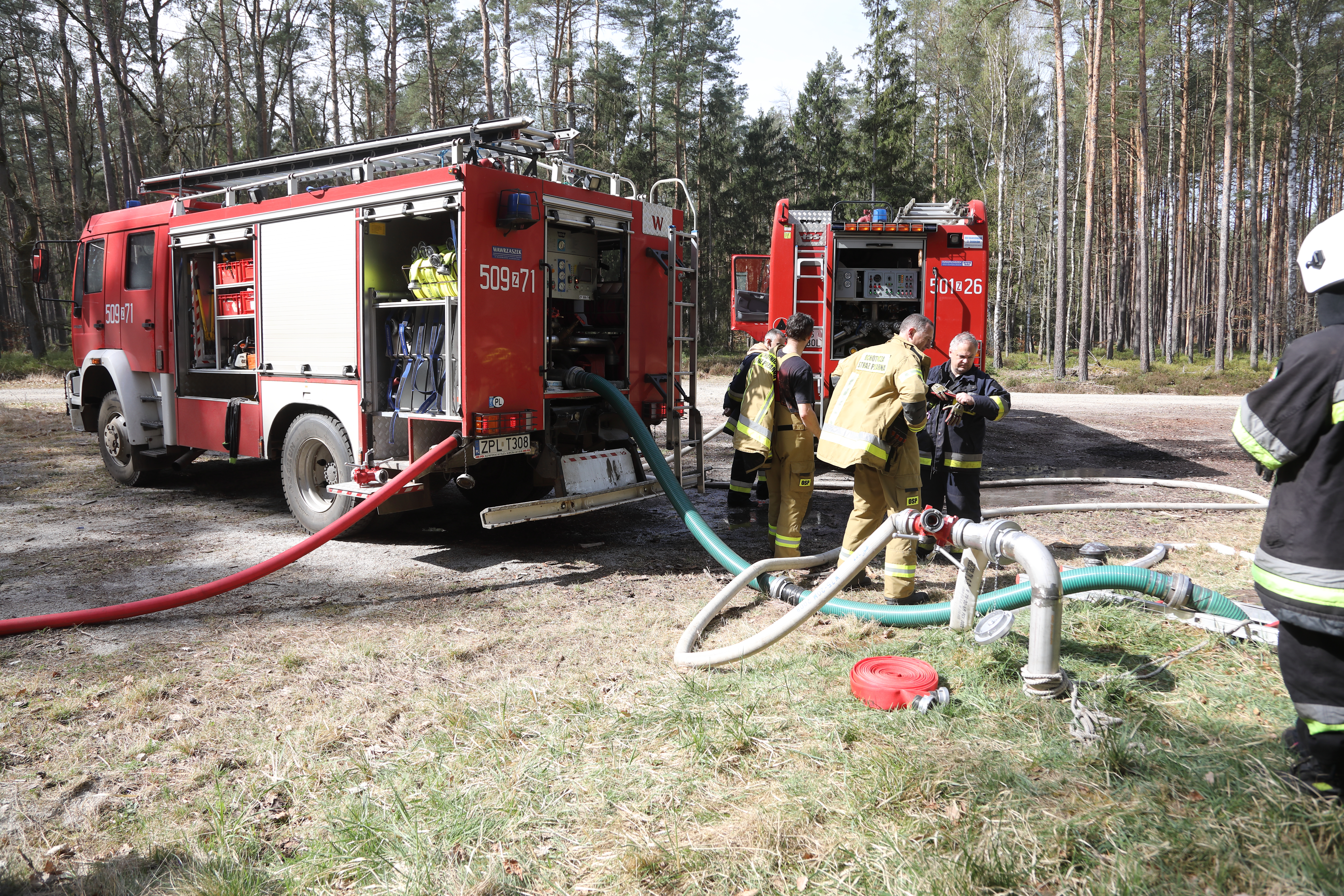 Dziś w Puszczy Wkrzańskiej w okolicy Brzózek i Trzebieży odbyły się powiatowe ćwiczenia ratownicze z zakresu gaszenia pożarów wielkoobszarowych na terenach leśnych. Scenariusz przewidywał pożar lasu na północ od Brzózek zaś zaopatrzenie wodne stanowiły wody Zalewu Szczecińskiego. Wodę na duże odległości dostarczano systemem mieszanym: poprzez przepompowywanie i dowożenie.