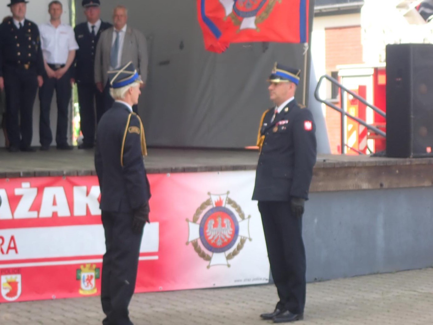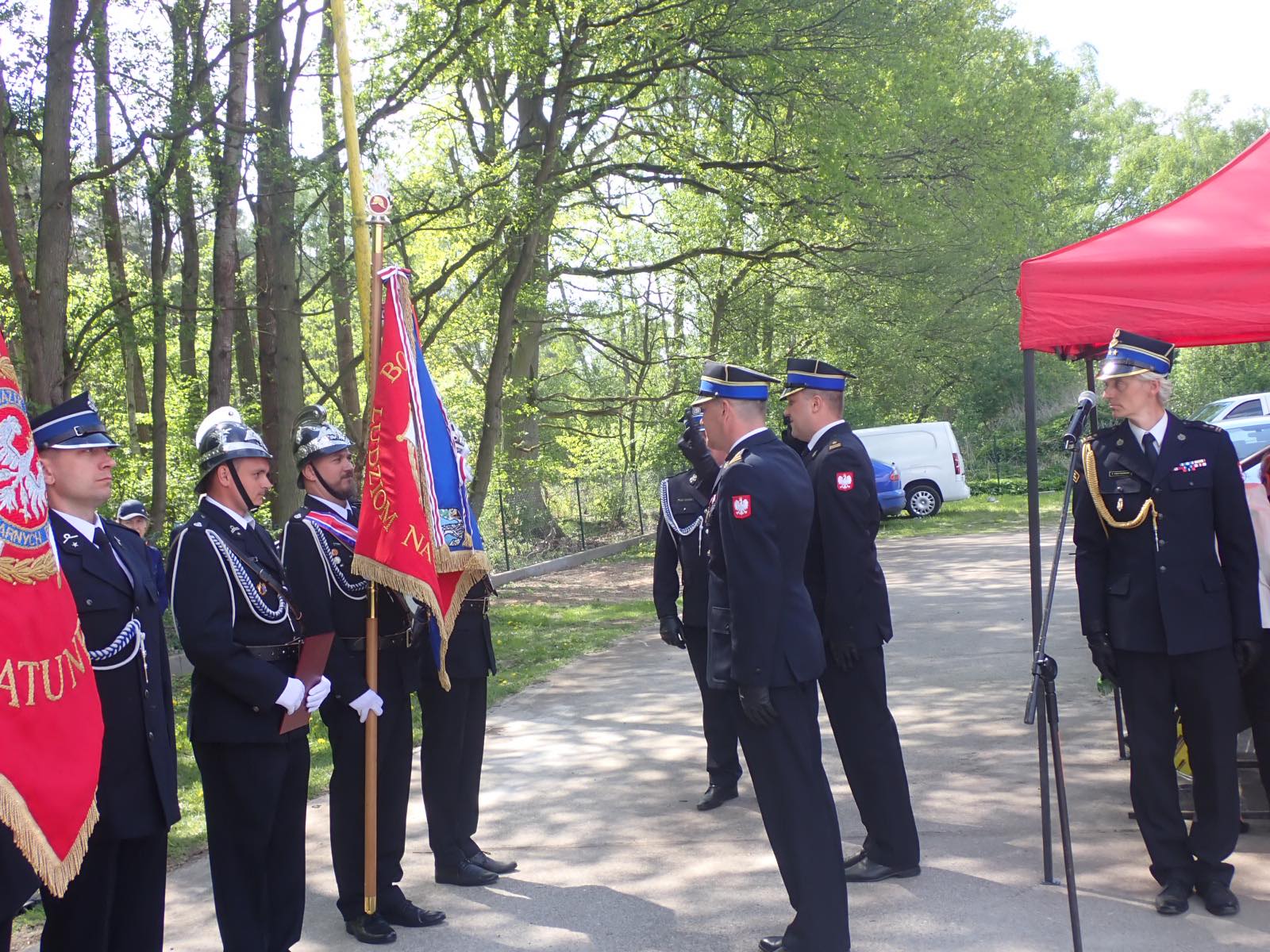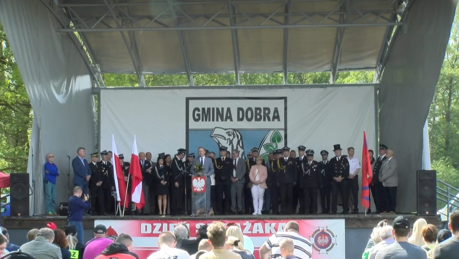 Zakończenie uroczystości zwieńczyły przemówienia zaproszonych gości, wśród których szczególnie miłe słowa w imieniu Zachodniopomorskiego Komendanta Wojewódzkiego PSP nadbryg. Jarosława Tomczyka przekazał st. bryg. Marek Popławski, który jako zastępca komendanta wojewódzkiego PSP pełni również rolę koordynatora ds. współpracy PSP i OSP. Głos zabrali również: Wiceprezes Zarządu Oddziału Wojewódzkiego Związku Ochotniczych Straży Pożarnych Rzeczypospolitej Polskiej druh Paweł Trzaskoś, Starosta Policki Pan Andrzej Bednarek oraz gospodarz terenu Wójt Gminy Dobra Pani Teresa Dera. W przemówieniach podkreślano widoczny wkład nie tylko w bezpieczeństwo mieszkańców powiatu, ale również widoczną w ostatnich latach znaczną poprawę infrastruktury w remizach i doposażenie jednostek w nowoczesny, profesjonalny sprzęt.