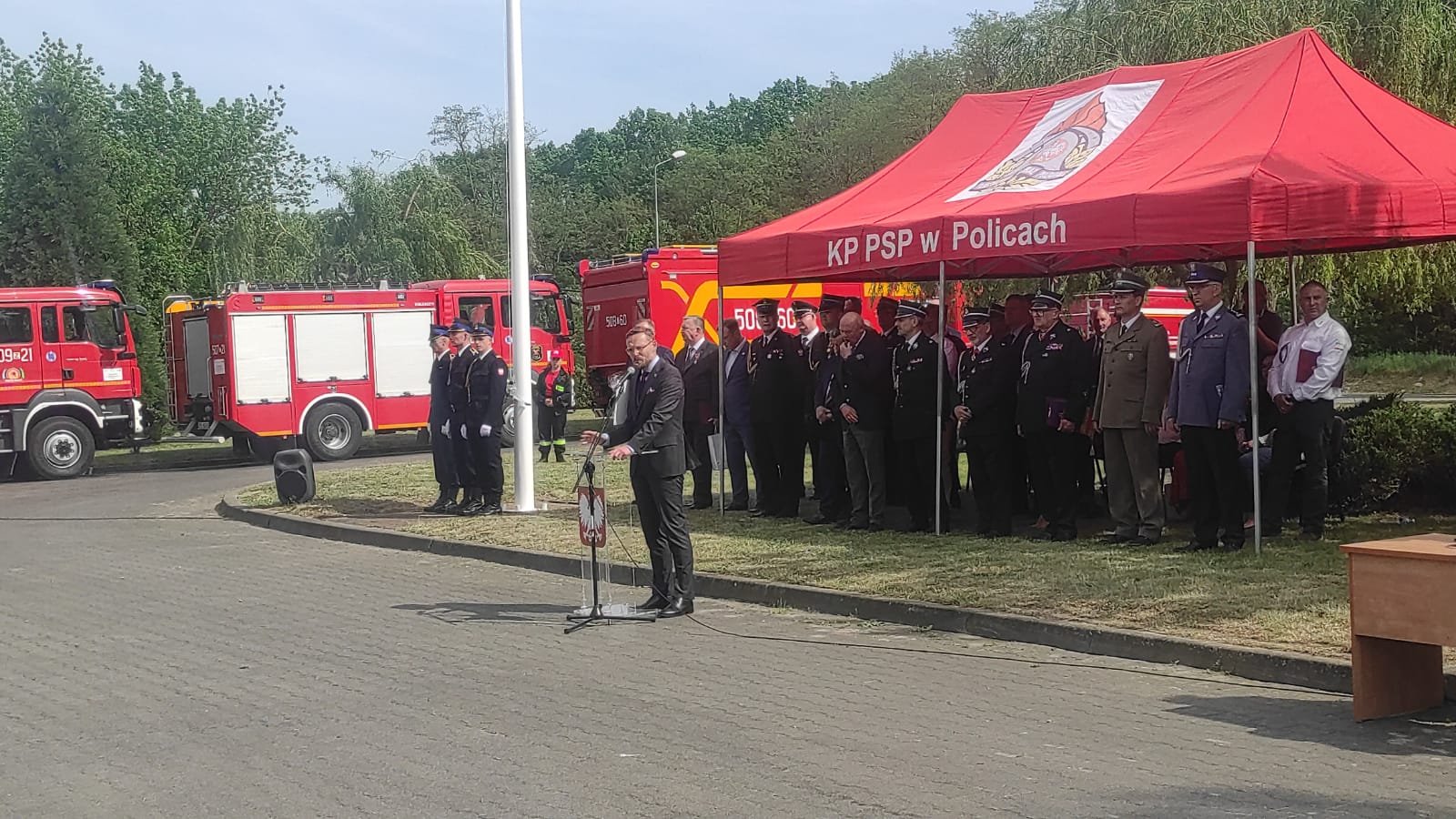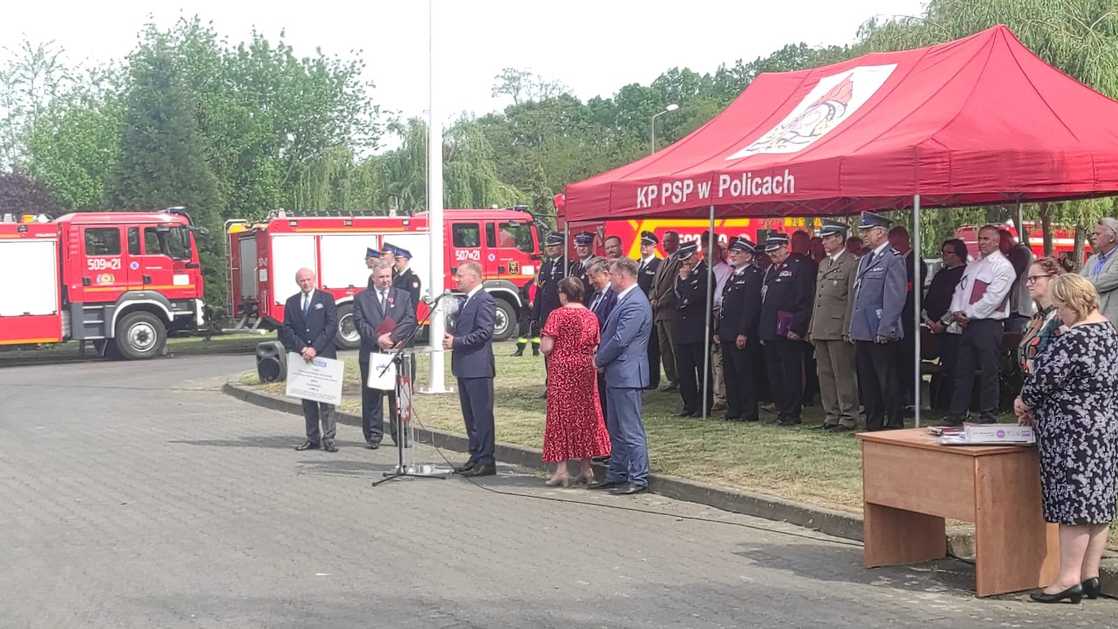 Zakończenie uroczystości zwieńczyły przemówienia zaproszonych gości, wśród których szczególnie miłe słowa skierował Wojewoda Zachodniopomorski Pan Zbigniew Bogucki. Głos zabrali również: Zastępca Zachodniopomorskiego Komendanta Wojewódzkiego Państwowej Straży Pożarnej st. bryg. Kazimierz Lesisz, Prezes Zarządu Oddziału Wojewódzkiego Związku Ochotniczych Straży Pożarnych Rzeczypospolitej Polskiej druh Marek Kowalski oraz Starosta Policki Pan Andrzej Bednarek wraz z samorządowcami - włodarzami gmin. Podkreślano widoczny wkład nie tylko w bezpieczeństwo mieszkańców powiatu, ale również działania prowadzone na wschodzie naszego kraju. Zwrócono szczególną uwagę na jubileusz 30.lecia powstania Państwowej Straży Pożarnej i przyszłe wyzwania wynikające z aktualnej sytuacji międzynarodowej i rozwoju cywilizacyjnego. W imieniu wyróżnionych strażaków słowa podziękowania jako ostatni złożył asp. Marcin Orłowski.