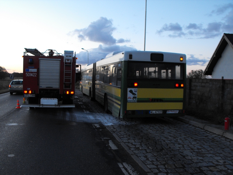 21 października o godzinie 7.20 rano wpłynęło do Powiatowego Stanowiska w Poliach zgłoszenie o pożarze autobusu linii 107 relacji Police-Szczecin. Na miejsce zgłoszenia (okolice Przęsocina) zostały zadysponowane 2 zastępy gaśnicze z Jednostki Ratowniczo-Gaśniczej w Poliach.