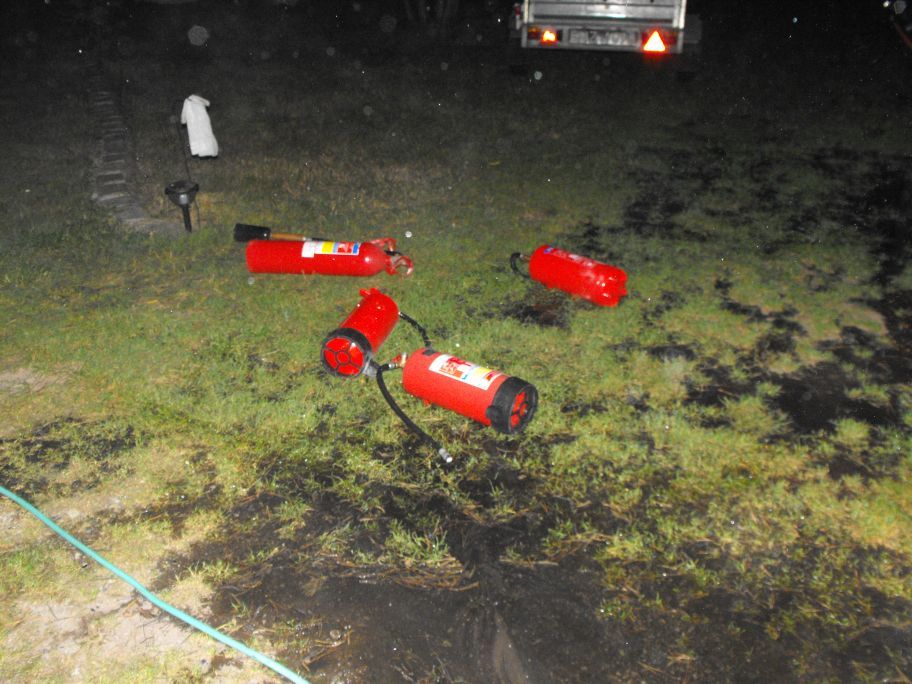 Działania zastępów na miejscu pożaru polegały na zabezpieczeniu miejsca zdarzenia oraz podaniu dwóch prądów gaśniczych na palący się barak i jednego w obronie na pobliskie drzewa. W trakcie gaszenia wyniesiono butle gazowe, które znajdowały się w baraku. Po ugaszeniu pożaru przekazano pogorzelisko właścicielowi. W akcji brało udział 6 strażaków z Państwowej Straży Pożarnej, 4 strażaków z Ochotniczej Straży Pożarnej oraz 2 funkcjonariuszy policji.