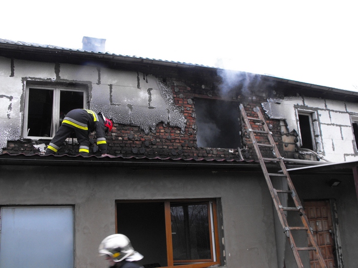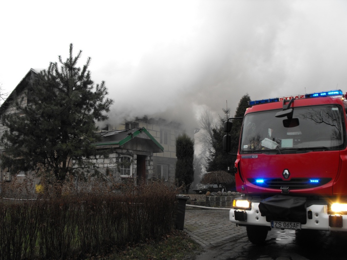 Na miejsce zgłoszenia dyżurny operacyjny zadysponował 6 zastępów gaśniczych: 3 z JRG Police, 1 z ZSP ZCh Police, 1 z OSP Tatynia oraz 1 z OSP Police. W chwili dojazdu pierwszej jednostki pożarem objęte było całe poddasze i pierwsze piętro budynku. Działania zastępów polegały na zabezpieczeniu miejsca zdarzenia, odłączeniu prądu w tablicy rozdzielczej oraz podaniu ośmiu prądów wody: cztery na zewnątrz w pierwszej fazie pożaru i cztery w środku obiektu. W czasie przeszukiwania pomieszczeń dotarła do ratowników potwierdzona informacja, iż wszyscy domownicy są poza nim. Niestety znaleziono martwego pieska rasy York. Równolegle z działaniami gaśniczymi prowadzona była ewakuacja mienia. Podczas dogaszania zarzewie ognia sprawdzane były przy pomocy kamery termowizyjnej. Działania ratowniczo-gaśnicze trwały łącznie 3,5 godziny. Straty oceniono na około 300 tys. złotych. Wstępną przyczną pożaru jest zwarcie w instalacji elektrycznej.