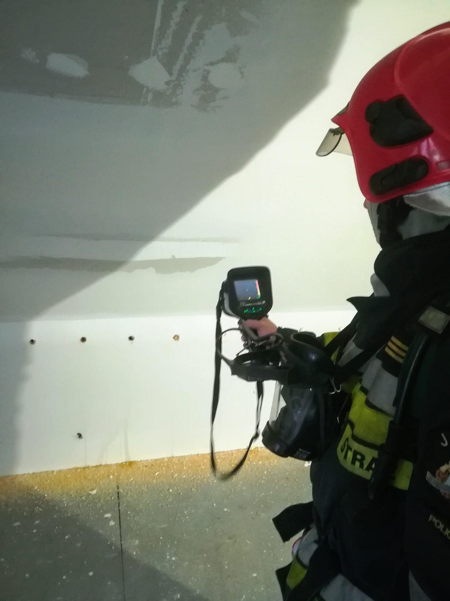 Strażacy po przyjeździe zlokalizowali źródło ognia za pomocą kamery termowizyjnej oraz podali prąd wody na palącą się izolację cieplną dachu. Celem ugaszenia źródła ognia dokonano częściowej rozbiórki pokrycia dachowego. W działaniach brały udział 4 zastępy z JRG Police.