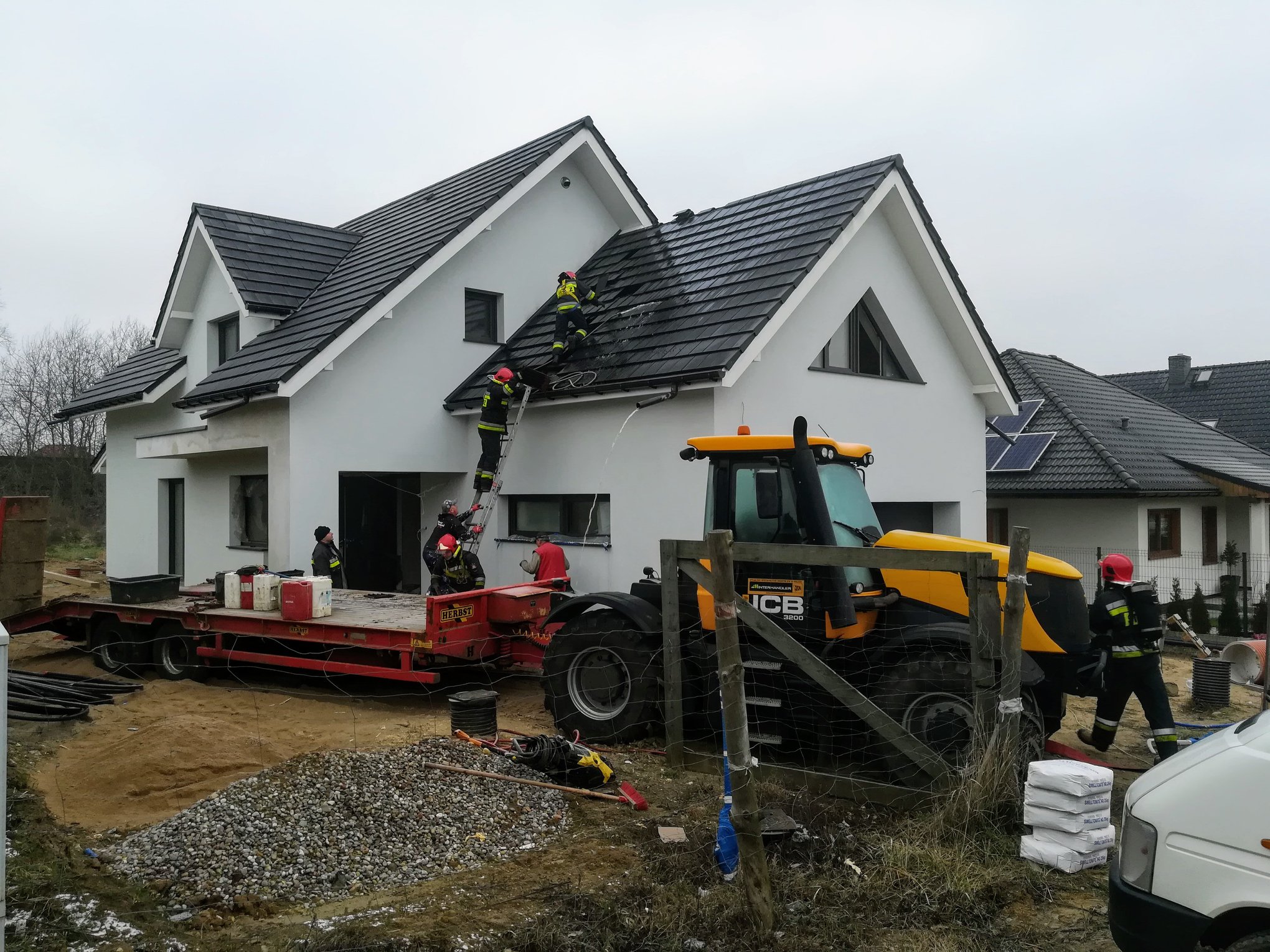 Pożar dachu budynku jednorodzinnego w trakcie budowy