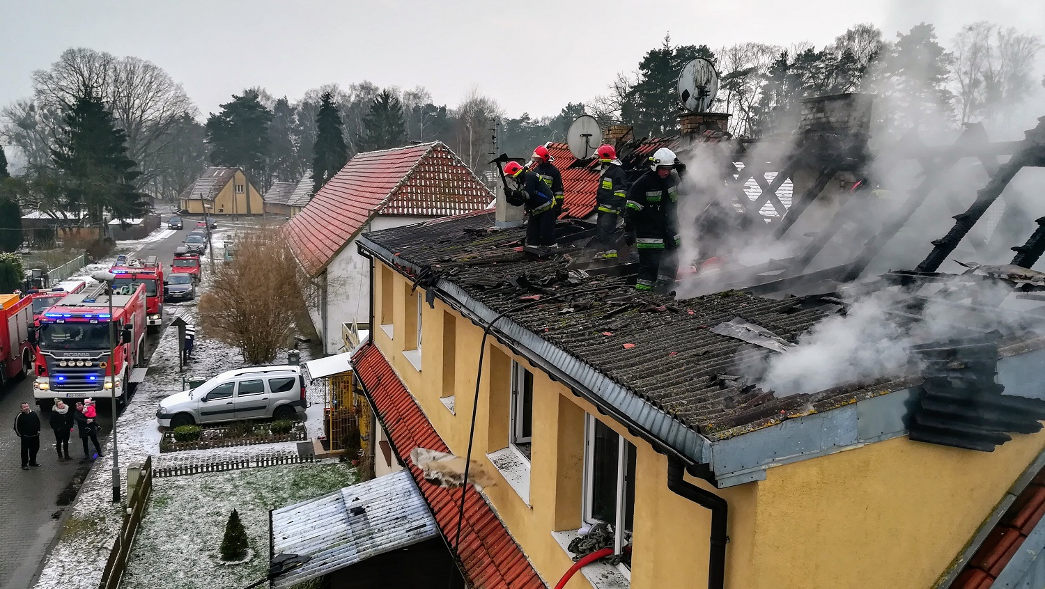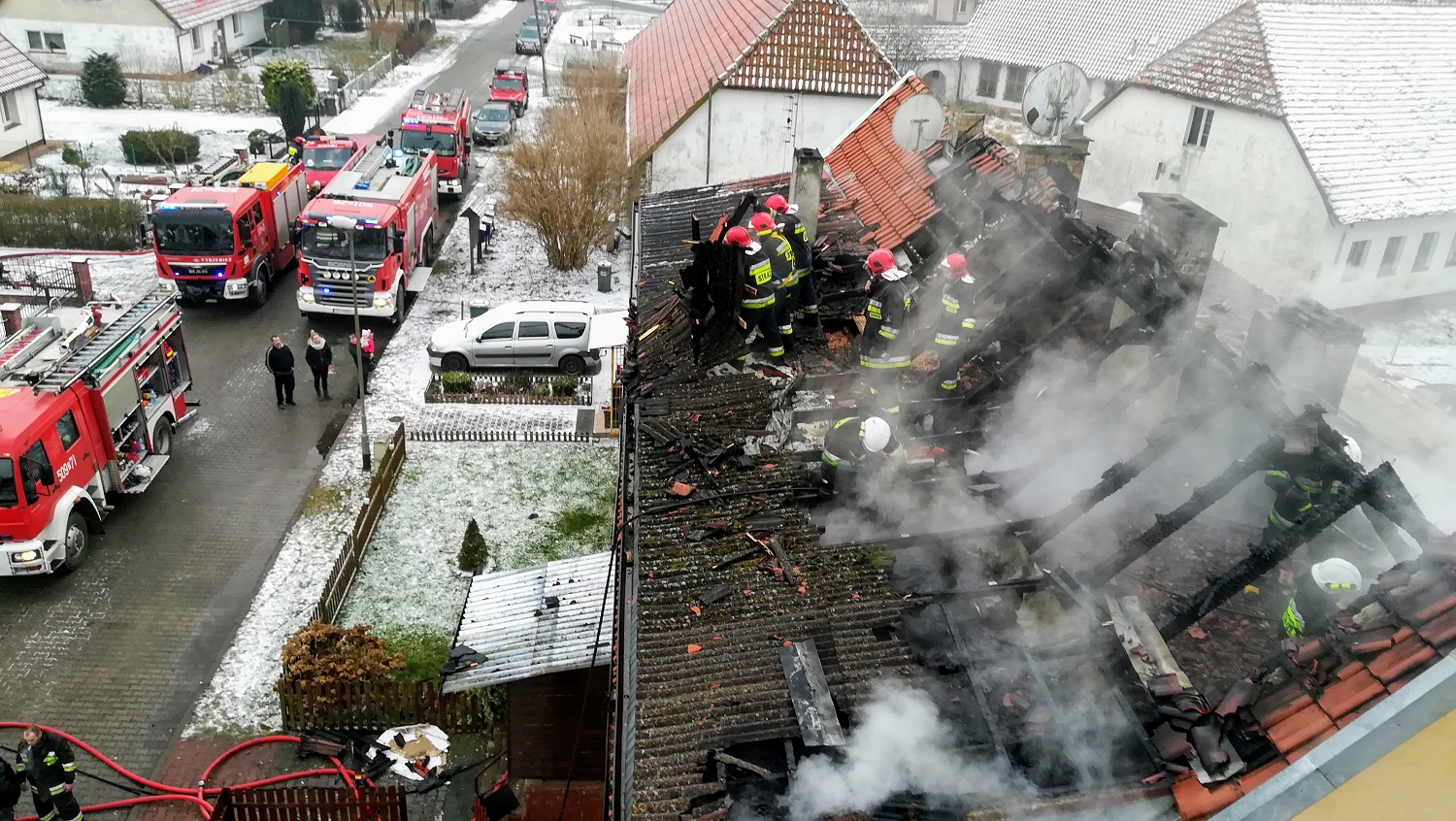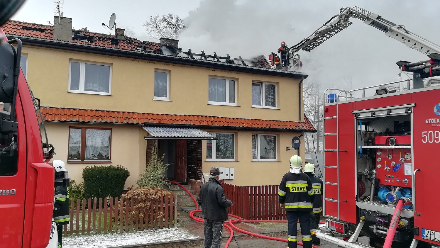 10 lutego br. dyżurny stanowiska kierowania odebrał zgłoszenie o godz. 13.42 o pożarze dachu budynku mieszkalnego wielorodzinnego (4 lokale mieszkalne) usytuowanego przy ul. Podgrodzie w Nowym Warpnie.