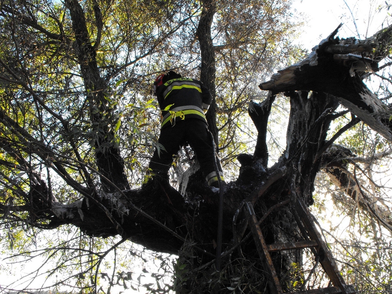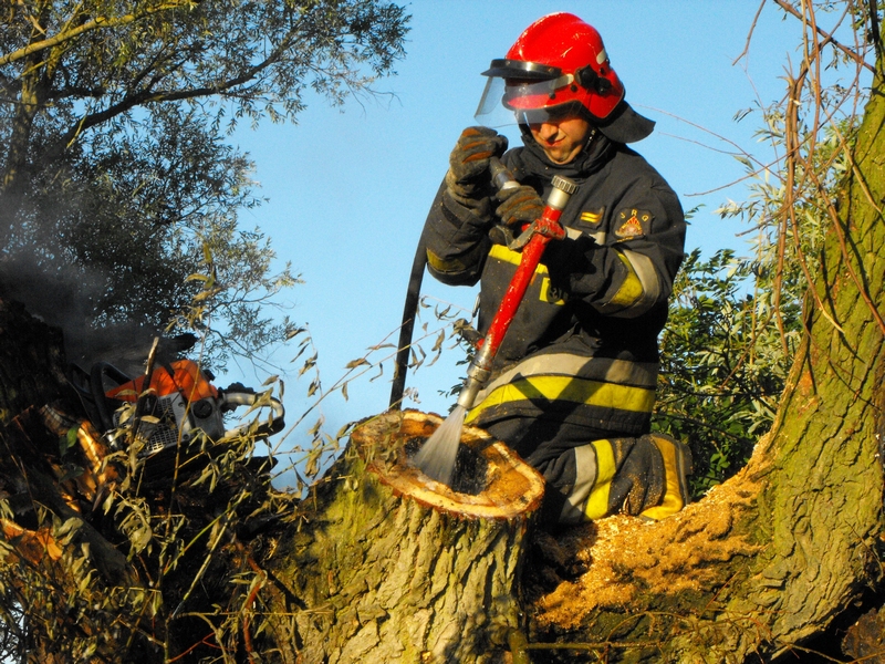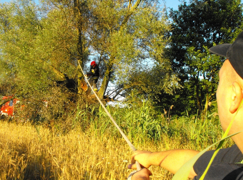 Na miejsce pożaru zostały wysłane 2 zastępy gaśnicze z Jednostki Ratowniczo-Gaśniczej z Polic, gdyż istniało duże ryzyko rozprzestrzenienia się ognia na rosnące w pobliżu zboże. Działania gaśnicze zastępów były utrudnione ponieważ ogień głęboko wniknął w strukturę drzewa.