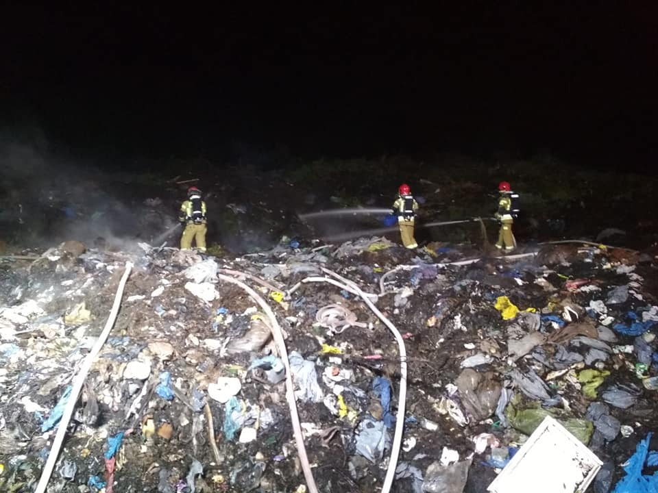 Pożar na składowisku odpadów komunalnych w Leśnie Górnym