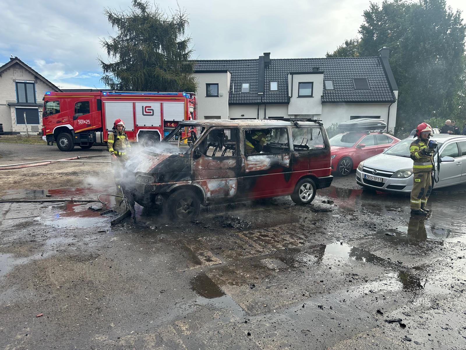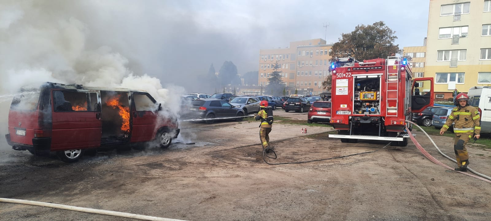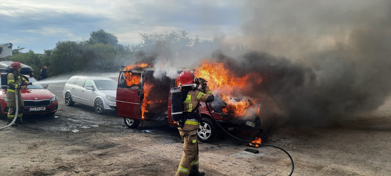 Dzisiaj o godz. 10.22 na parkingu przy ul. Siedleckiej w Policach doszło do pożaru samochodu typu mikrobus. W zdarzeniu brały udział 3 zastępy z JRG Police