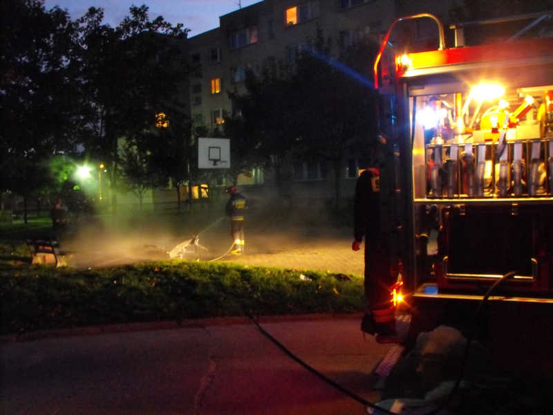 Pożar tapczanu na ulicy Wyszyńskiego w Policach