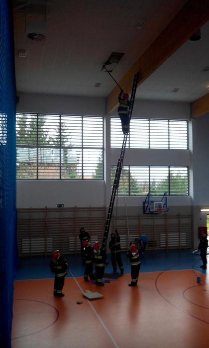 Na miejsce zdarzenia zostały zadysponowane 2 zastępy z Jednostki Ratowniczej nr 3 ze Szczecina oraz 1 zastęp z Ochotniczej Straży Pożarnej w Wołczkowie. Działania polegały na zabezpieczeniu miejsca zdarzenia poprzez wyłączenie prądu w budynku szkoły. Po rozstawieniu drabiny dwuprzęsłowej ugaszono pożar za pomocą gaśnicy proszkowej. Następnie zdementowano lampę, która była przyczyną pożaru. Na polecenie dyrektora szkoły została przeprowadzona ewakuacja dzieci oraz personelu przez pracowników szkoły. Ewakuowano 294 uczniów oraz 22 osoby stanowiące personel szkoły.