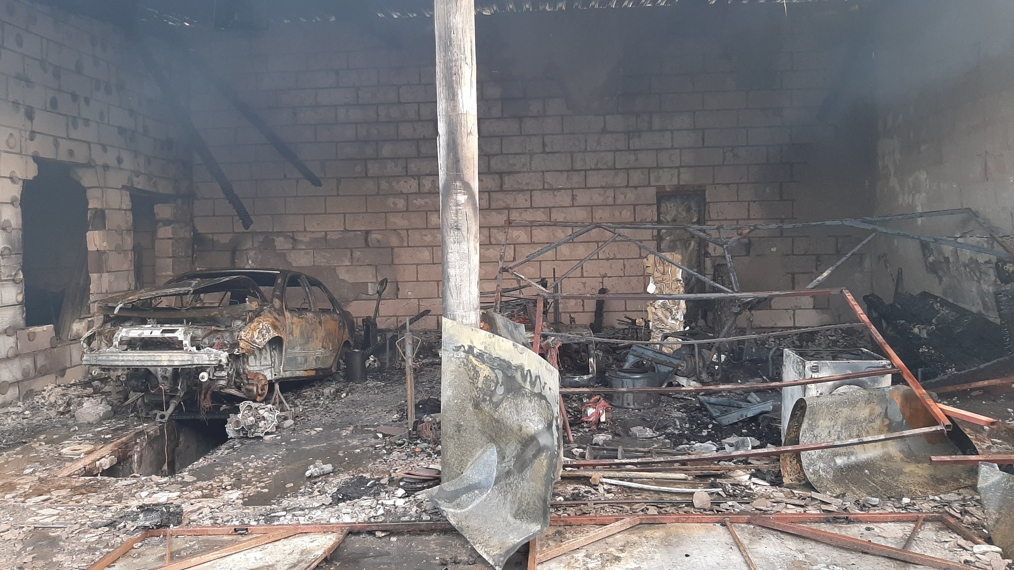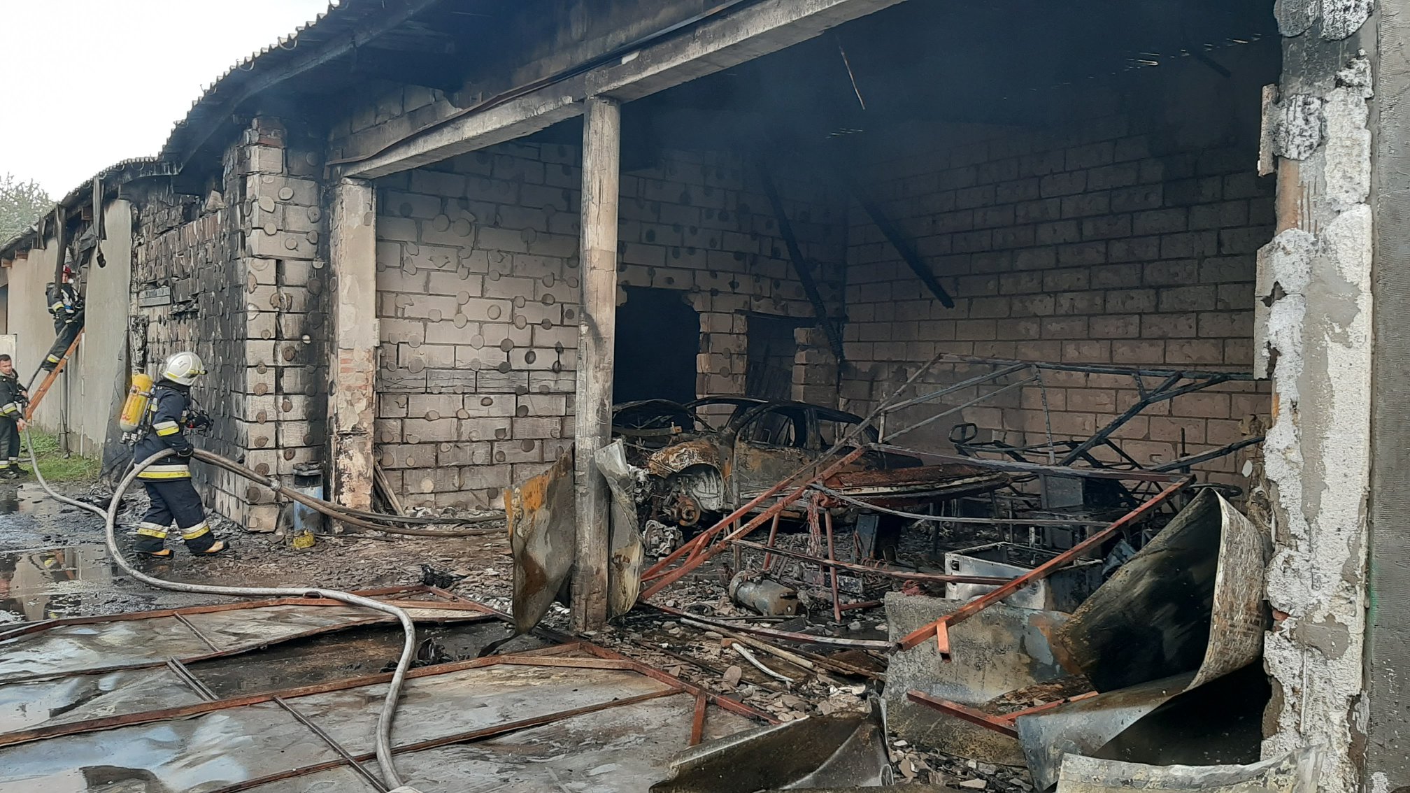 Podczas przyjazdu pierwszych zastępów pożarem objęte było ok. 200 m2 powierzchni budynku, w tym część obiektu użytkowana jako warsztat samochodowy, który znajdował się w bezpośrednim sąsiedztwie zabudowań. Na skutek pożaru konstrukcja budynku została uszkodzona i groziła zawaleniem wobec czego działania gaśnicze prowadzone były na zewnątrz.