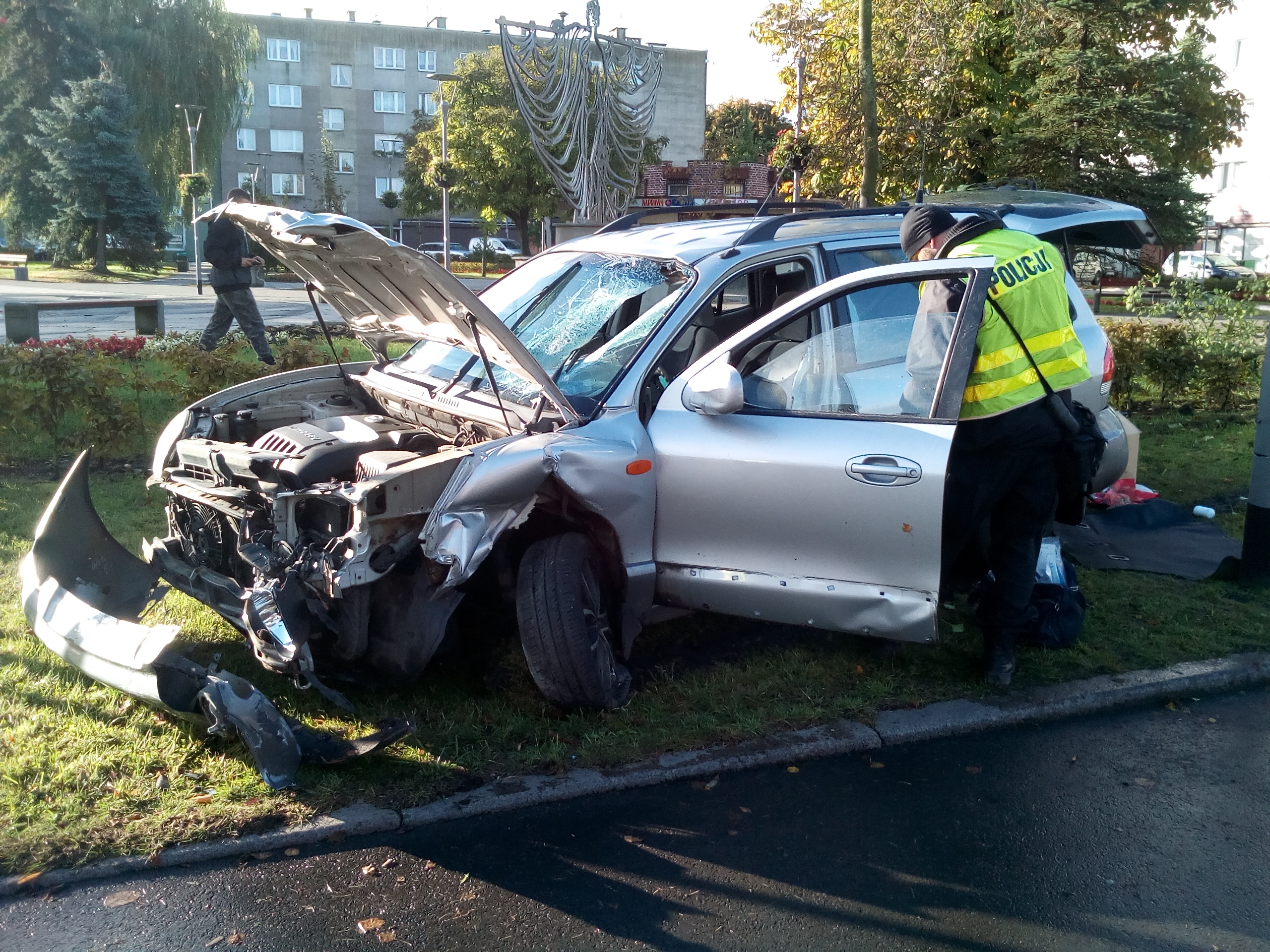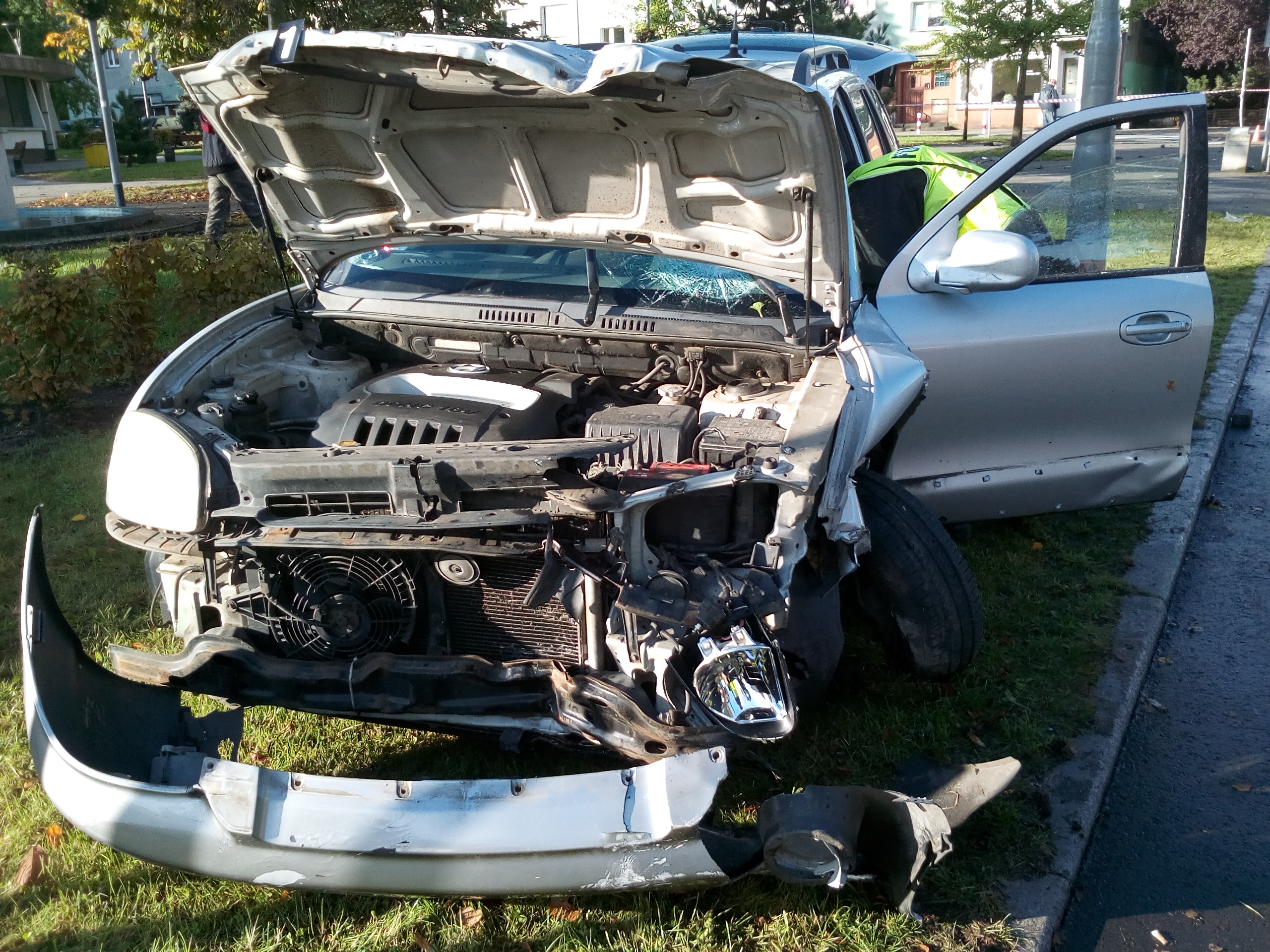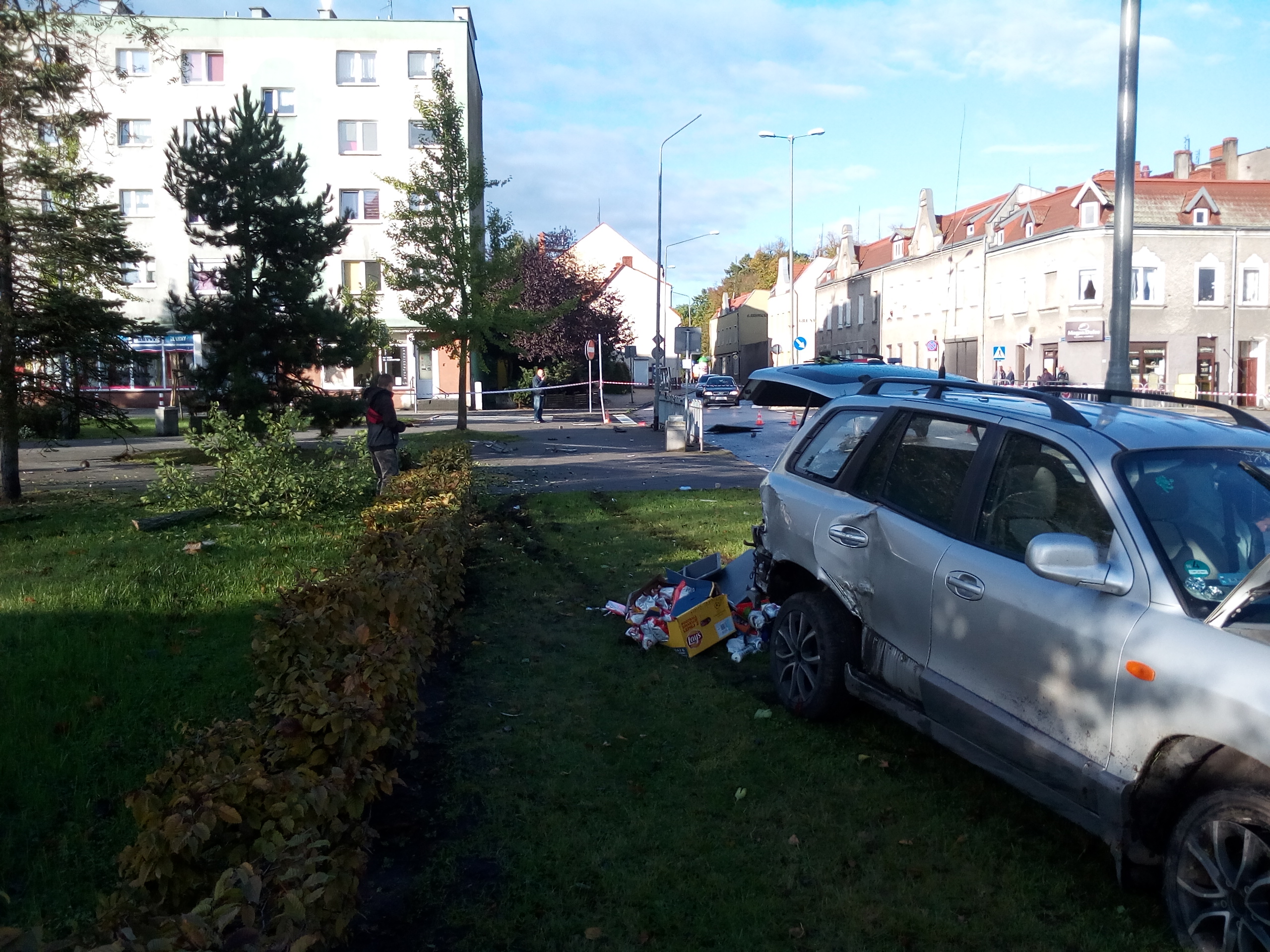 W dniu 8 października ok. godz. 7.30 kierujący samochodem osobowym marki Hyundai Santa Fe wjechał w barierki ochronne i znak drogowy, następnie uderzył w drzewo i lampę uliczną zlokalizowane przy ul. Grunwaldzkiej w Policach.
