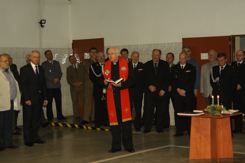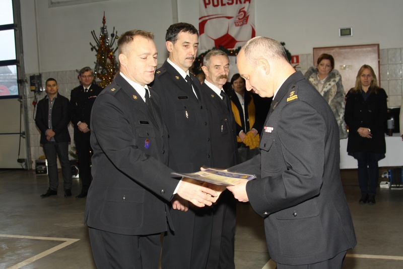 Przed składaniem sobie nawzajem życzeń Komendant Powiatowy PSP w Policach bryg. Dariusz Uchto wręczył upominkowe dyplomy z okazji 20-lecia powołania Państwowej Straży Pożarnej dla funkcjonariuszy z co najmniej 20 letnim stażem służby: mł. bryg. Zbigniewa Wojtowicza, mł. kpt. Dariusza Pawlikowskiego i mł. kpt. Krzysztofa Wójcika. Komendant wręczył również decyzję personalną Zachodniopomorskiego Komendanta Wojewódzkiego o przyznaniu nagrody pieniężnej dla asp. Krzysztofa Ciszewskiego za zaangażowanie i inicjatywę w realizacji zadań służbowych. Następnie odbyła się prezentacja nowego samochodu oraz jego poświęcenie przez kapelana powiatowego strażaków księdza Waldemara Szczurowskiego.
