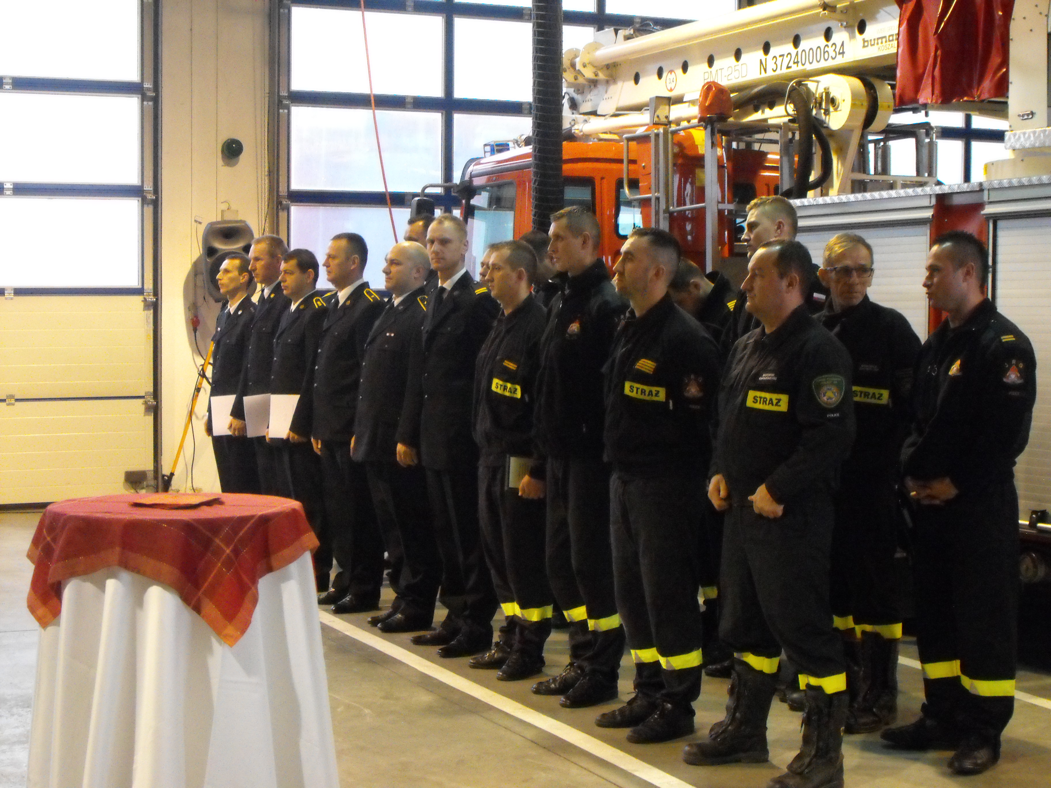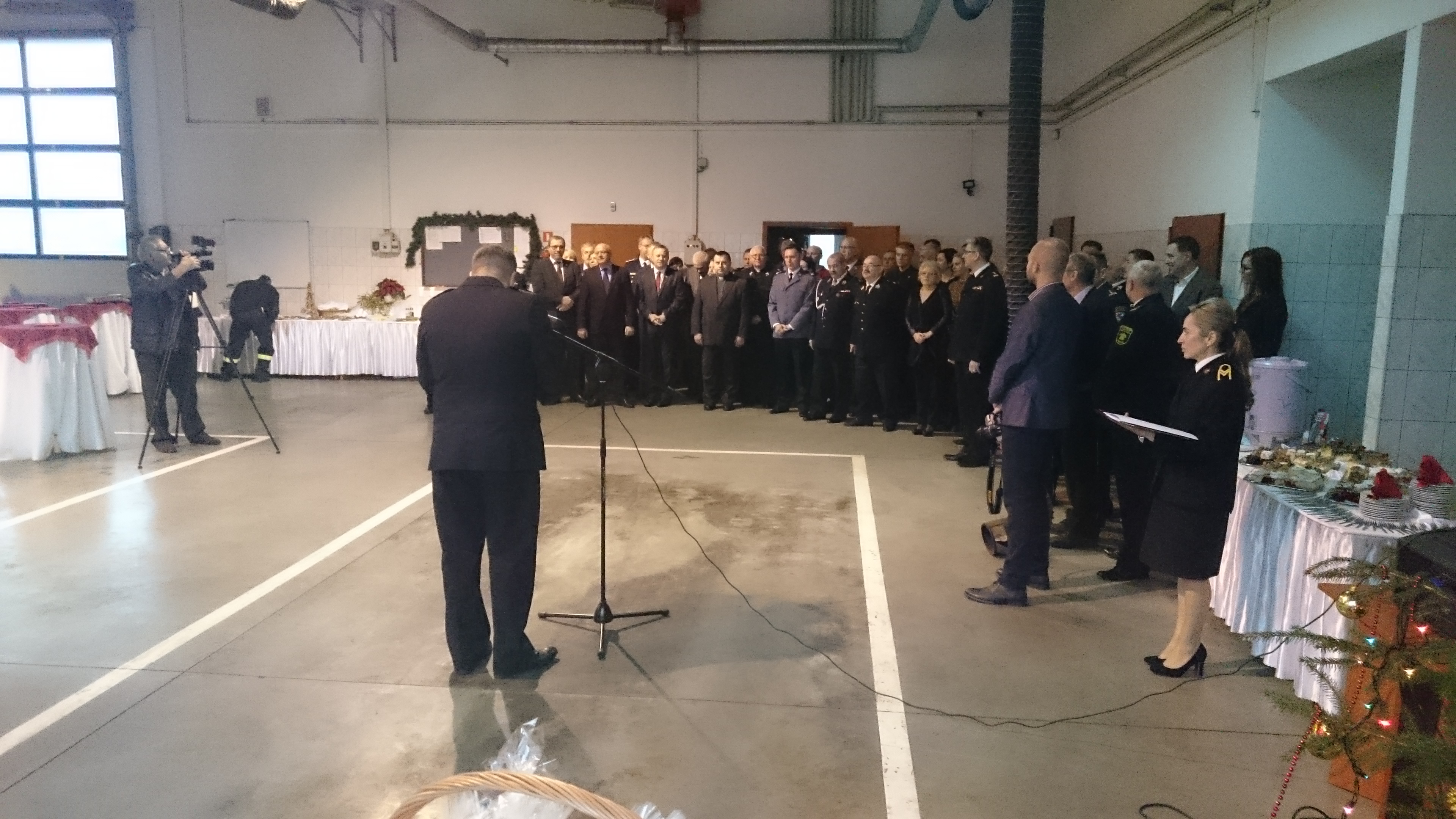 Spotkanie rozpoczął Komendant Powiatowy st. bryg. Marek Gendek witając gości i przedstawiając krótkie sprawozdanie z działalności Komendy w mijającym roku. Komendant promował również akcję "Czad i ogień. Obudź czujność." Zachęcał, aby w ramach świątecznych prezentów obdarować najbliższych czunikiem tlenku węgla i czujnikiem dymu. Następnie Zachodniopomorski Komendant Wojewódzki PSP st. bryg. Jacek Staśkiewicz złożył zebranym życzenia świąteczne i wręczył nagrody finansowe wyróżnionym strażakom. Kolejną część spotkania przeznaczono na składanie życzeń świątecznych przez przybyłych gości. Uroczystość zakończyła się przy stole wigilijnym, na którym nie zabrakło tradycyjnych potraw przygotowanych m. in. przez strażaków.