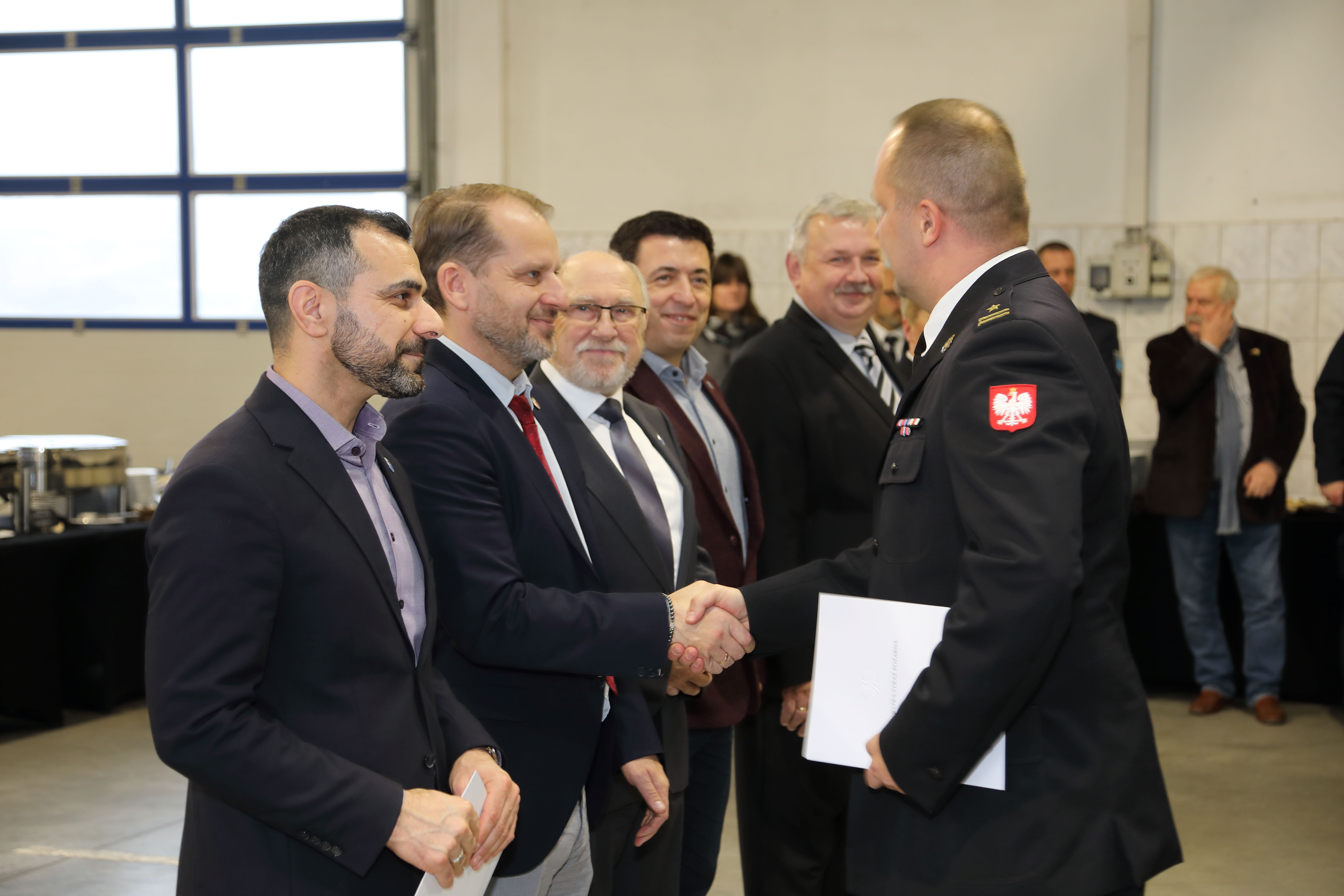 Komendant złożył również podziękowania dla samorządów za wsparcie w realizacji inwestycji polegającej na budowie instalacji fotowoltaicznej wraz z montażem magazynu energii.