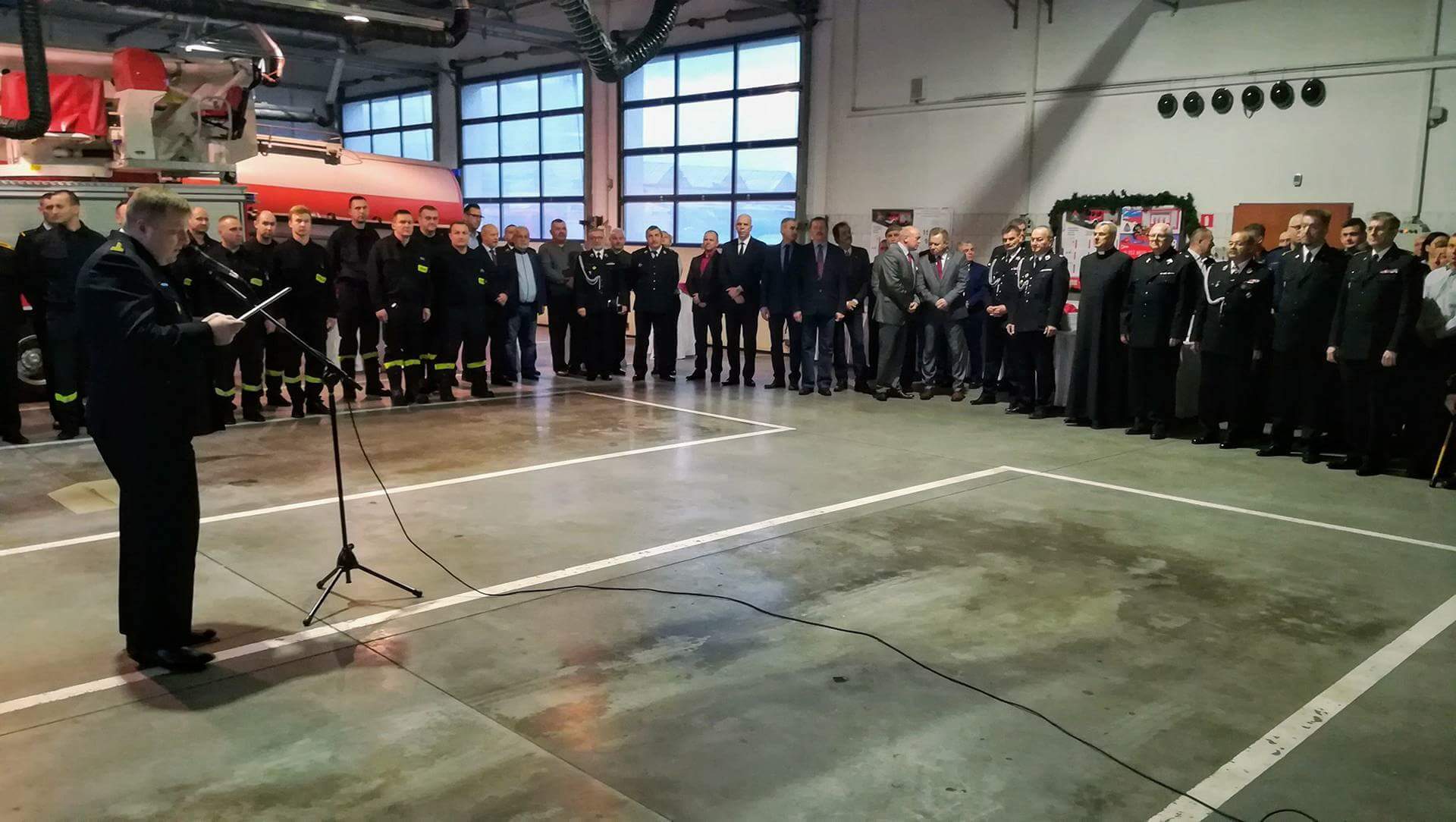Spotkanie rozpoczął Komendant Powiatowy st. bryg. Marek Gendek witając gości i przedstawiając krótkie sprawozdanie z działalności Komendy w 2017 r. Zachodniopomorski Komendant Wojewódzki PSP st. bryg. Jacek Staśkiewicz wręczył zasłużonym strażakom Zakładowej Straży Pożarnej Z. Ch. "Police" listy gratulacyjne od Ministra Spraw Wewnętrznych i Administracji za udział w akcji gaszenia pożaru katedry w Gorzowie Wielkopolskim. Wręczono również pamiątkowe nagrody dla tegorocznych, najaktywniejszych strażaków. W kategorii ilości wyjazdów do akcji ratowniczo-gaśniczych strażaków PSP wygrali: mł. ogn. Maciej Rowiecki - 79 zdarzeń, asp. Piotr Plizga - 75 zdarzeń i st. str. Grzegorz Mazanek - 75 zdarzeń. Sposród strażaków OSP wyjeżdżali najczęściej: dh. Eugeniusz Wawrzoła z OSP Dobra - 105 razy, dh. Grzegorz Januszewski z OSP Kołbaskowo - 95 razy i dh. Jan Suszczyński z OSP Wołczkowo - 78 razy. Sposród dyżurnych operacyjnych powiatu największą ilość zdarzeń prowadziła asp. sztab. Jolanta Januszewska-Zemła - 202. Tradycją polickich spotkań wigilijnych jest eksponowanie nowego sprzętu. Uczestniczący w uroczystości księża poświęcili nowy samochód operacyjny, który dopiero wczoraj zagościł w garażu naszej Komendy. Po wzajemnym złożeniu sobie świątecznych życzeń uczestnicy spotkania mogli skosztować tradycyjnych, wigilijnych potraw przygotowanych m. in. przez strażaków.